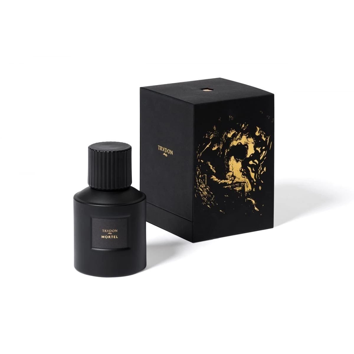 Dans son habit sombre, composé d’un flacon et cabochon noir mat, Mortel Noir impressionne : sur l’étiquette, seul son nom se découpe en lettre d’or.
