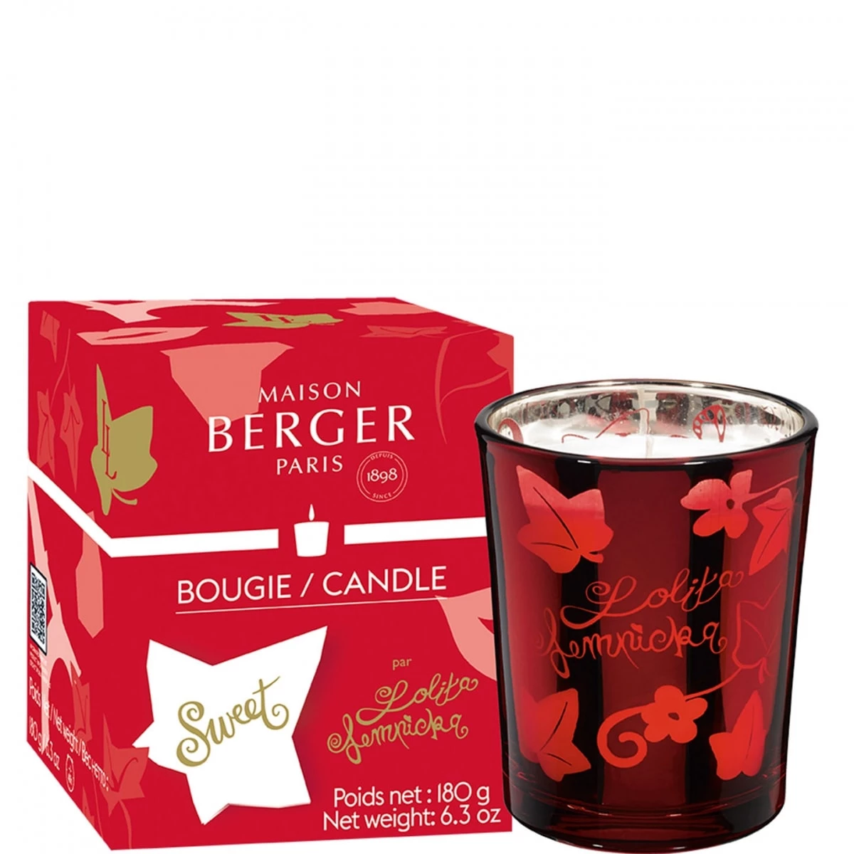 Imprégniée du parfum Lolita Lempicka Sweet, cette bougie parfumée vous transportera dans une ambiance olfactive sensuelle et gourmande, sur fond de notes de cerise, de cacao et de musc pendant plus ou moins 40 heures.