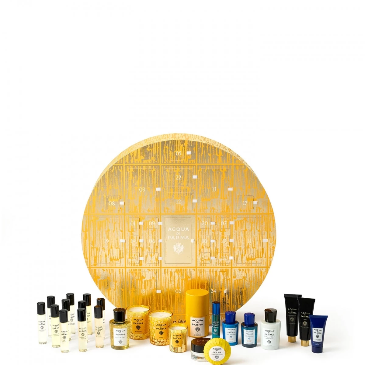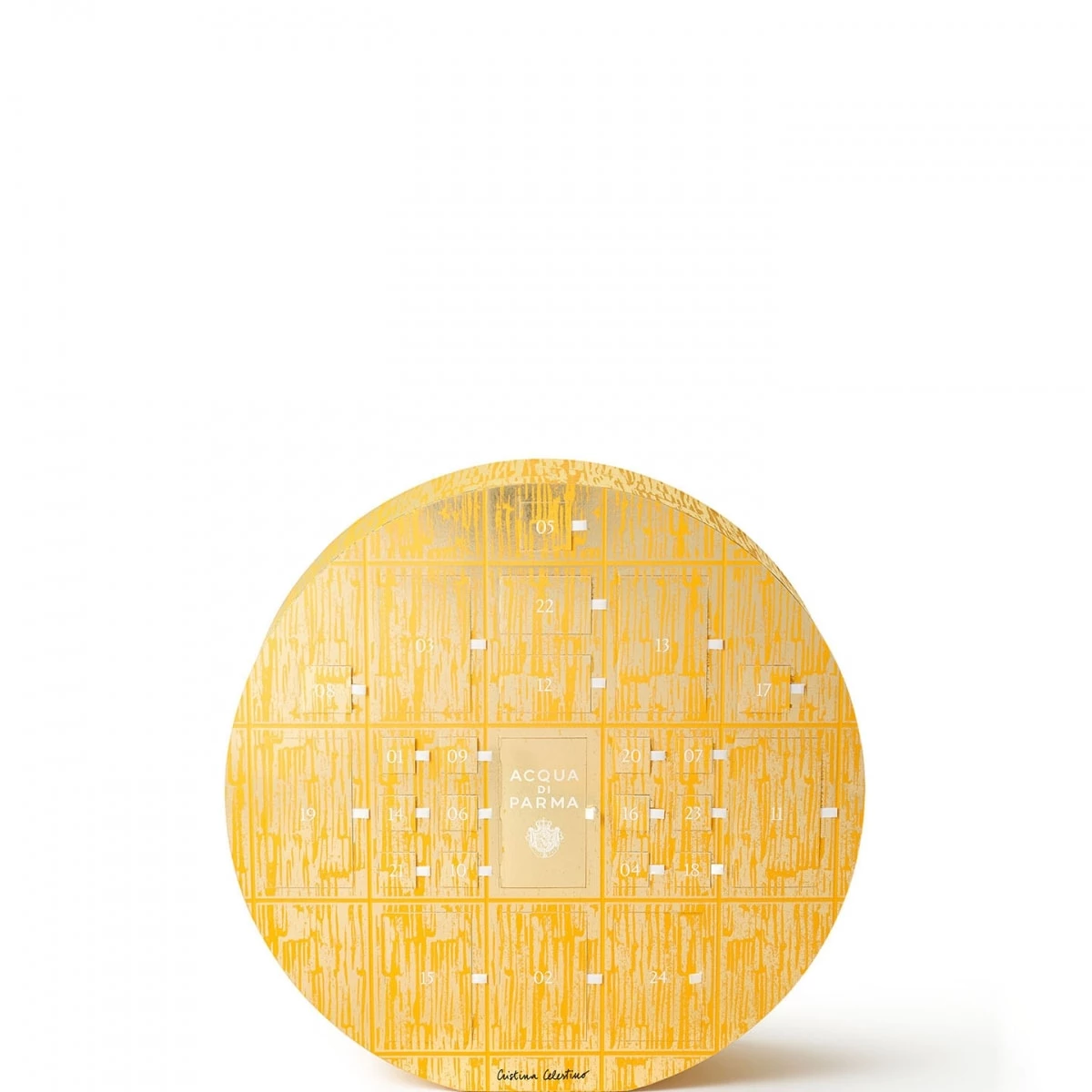 Le calendrier est présenté dans un étui festif paré d’un motif Acqua di Parma de saison, une réinterprétation graphique audacieuse des techniques artisanales traditionnelles rehaussée d’un effet doré brossé.