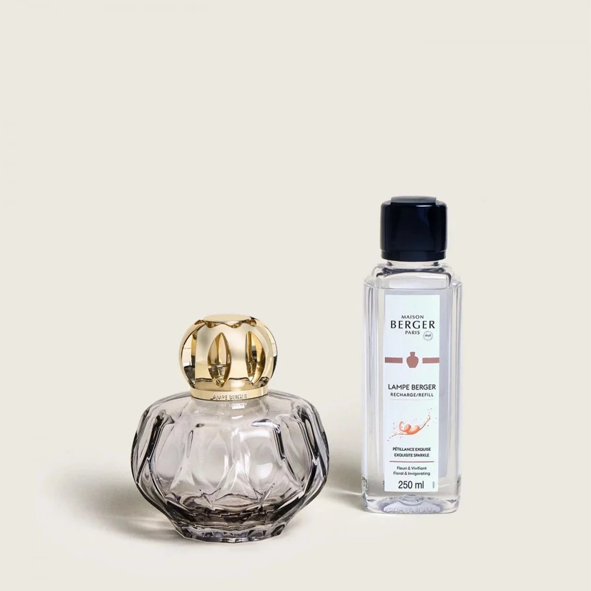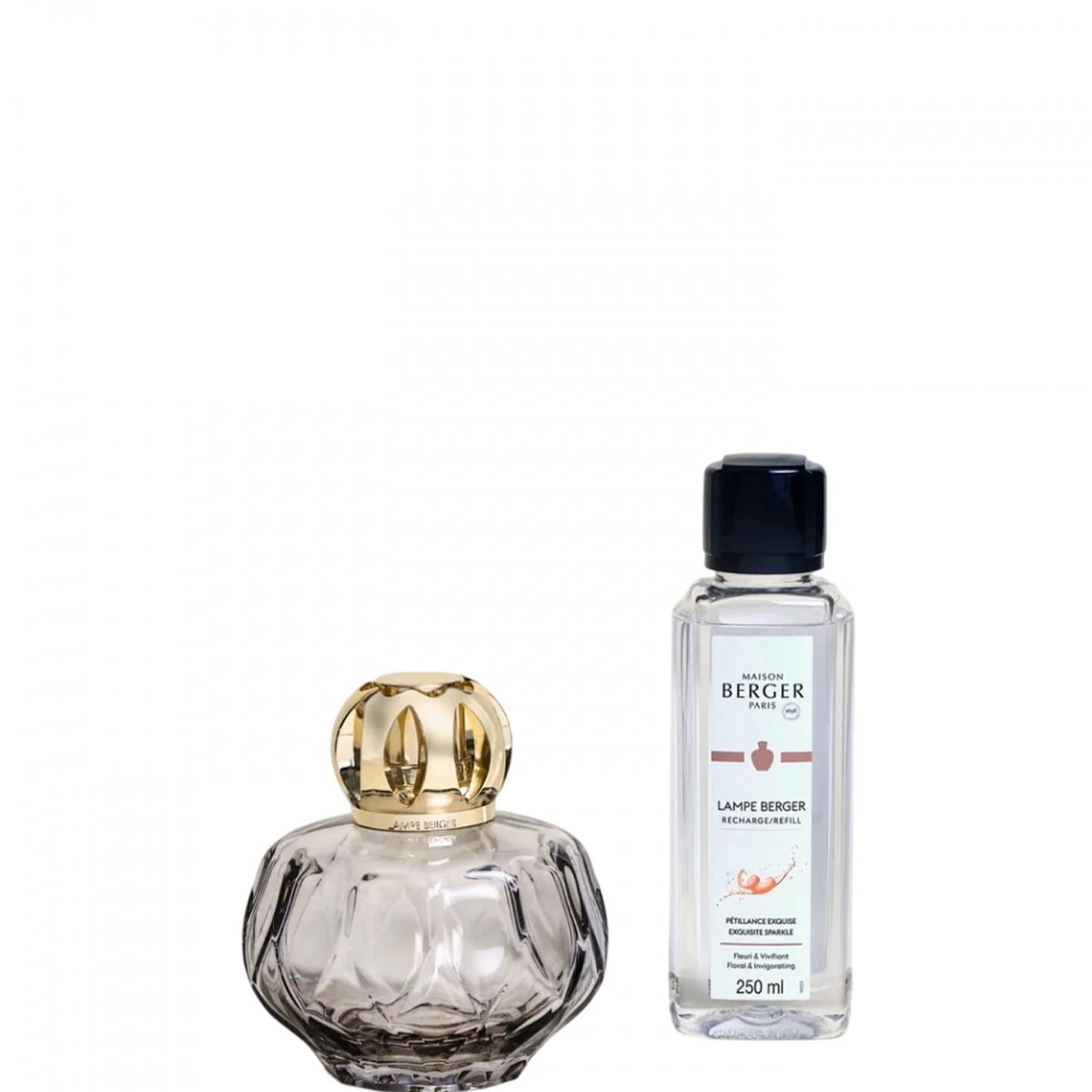 La lampe est fournie en coffret avec le parfum « Pétillance Exquise » de 250 ml dans une boîte en carton de haute qualité, avec un brûleur catalytique, un bouchon extincteur et un entonnoir comme accessoires.