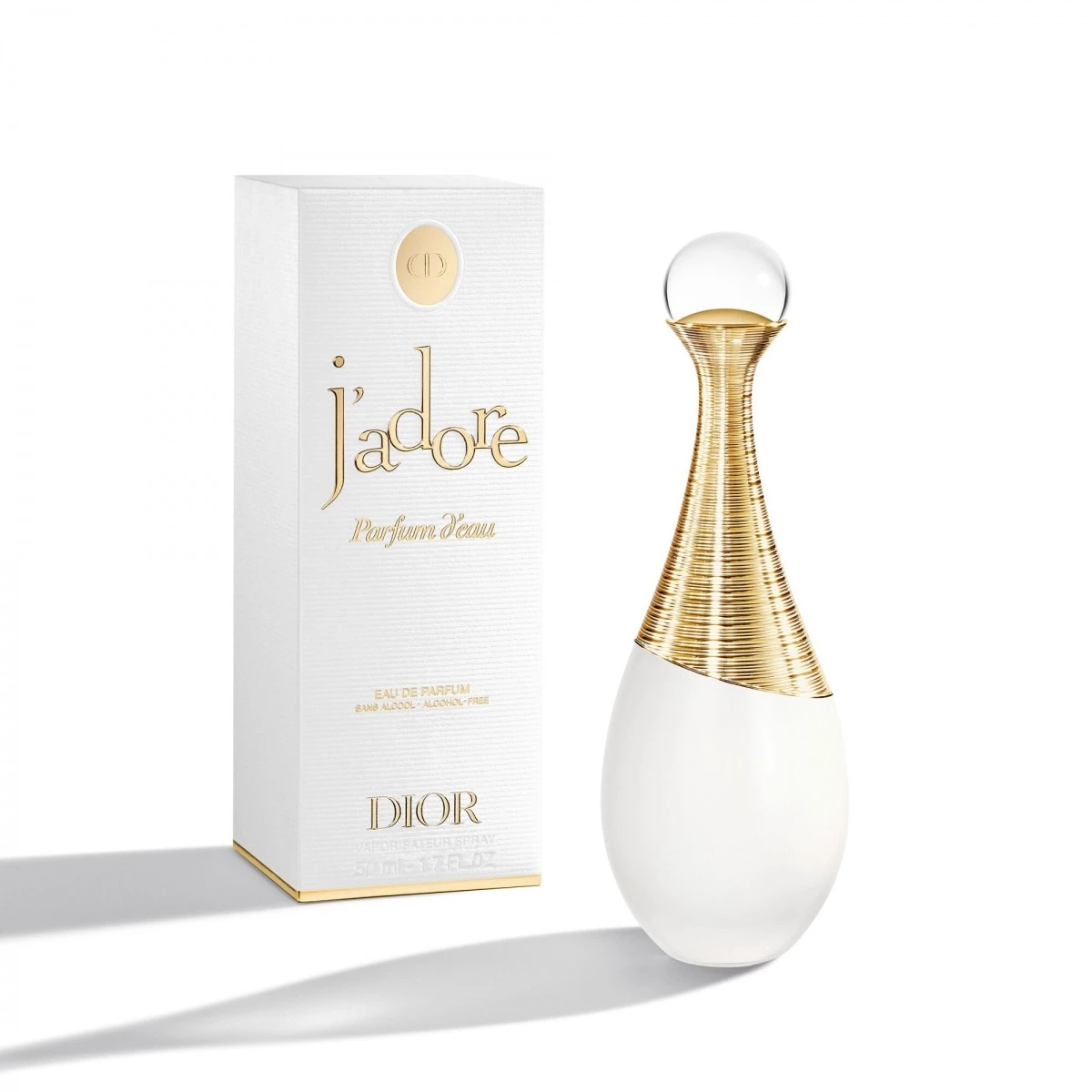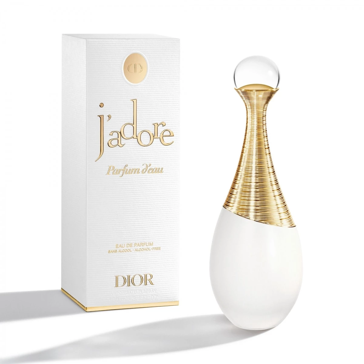 Premier parfum Dior sans alcool, J’adore Parfum d’eau recompose le bouquet iconique de J’adore en une olfaction spontanée : vaporisé en nuage, avec générosité, il déploie sur la peau des notes de jasmin sambac, de néroli et de magnolia.