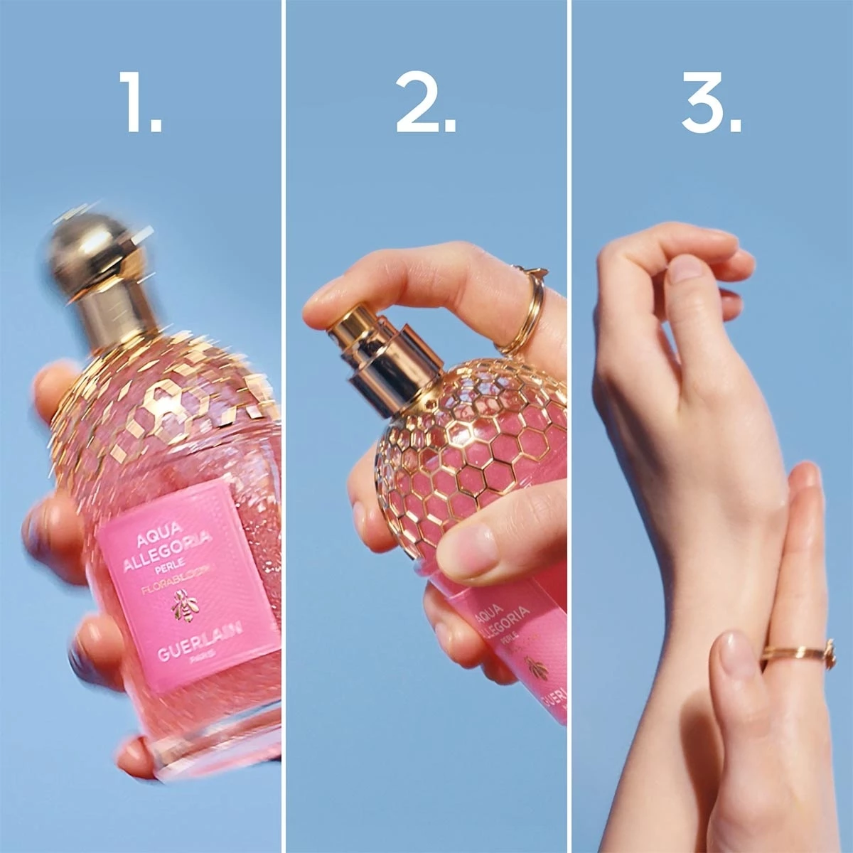 Véritables parfums de peau, les fragrances Aqua Allegoria Perle combinent l’intensité d’une eau de parfum à l’effet d’un soin hydratant. Dans cette nouvelle génération de parfum d’eau*, le parfum est capturé à l’intérieur de microbilles composées d’alginate d’origine naturelle qui évoluent dans une base aqueuse, formulée sans alcool.