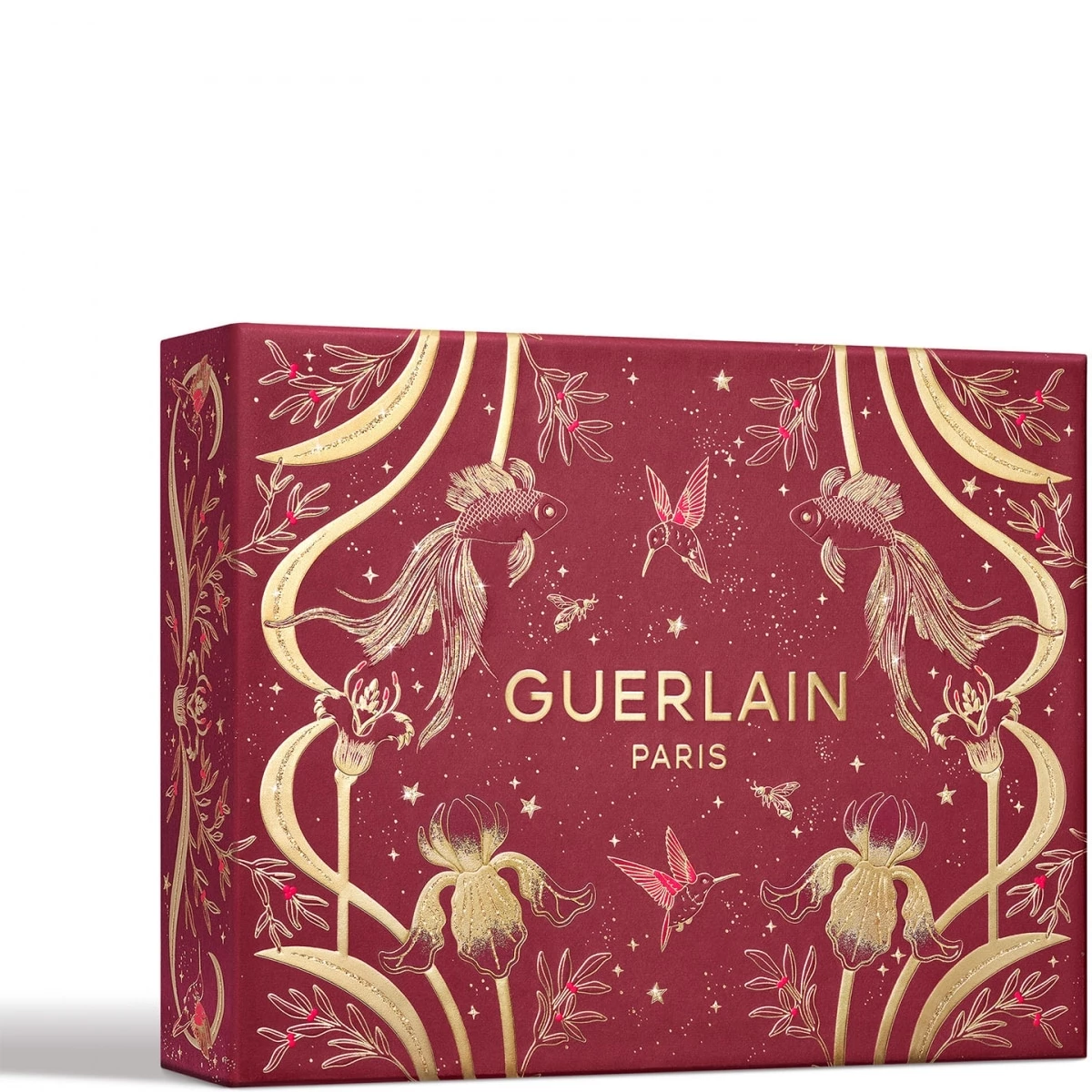 Les coffrets Guerlain se parent d’un nouveau décor exclusif, rouge profond orné de délicats détails scintillants.