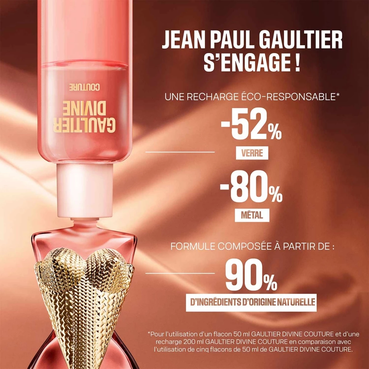 - Gaultier Divine Couture Recharge 200 ml Une recharge écologique dotée d’un système dévissable auto-stop. Jusqu’à 52% de verre et 80% de métal en moins* en faveur de l’environnement. Un geste responsable, fidèle à l’allure Gaultier : affirmée, élégante, consciente.