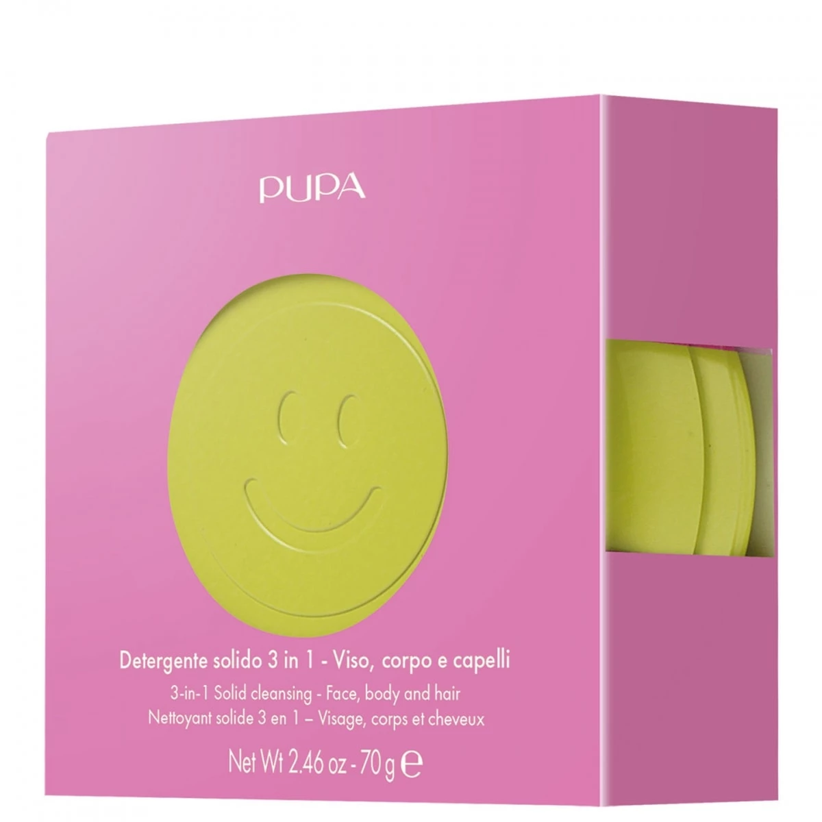 Nettoyant solide 3 en 1 pour nettoyer délicatement le visage, le corps et les cheveux.