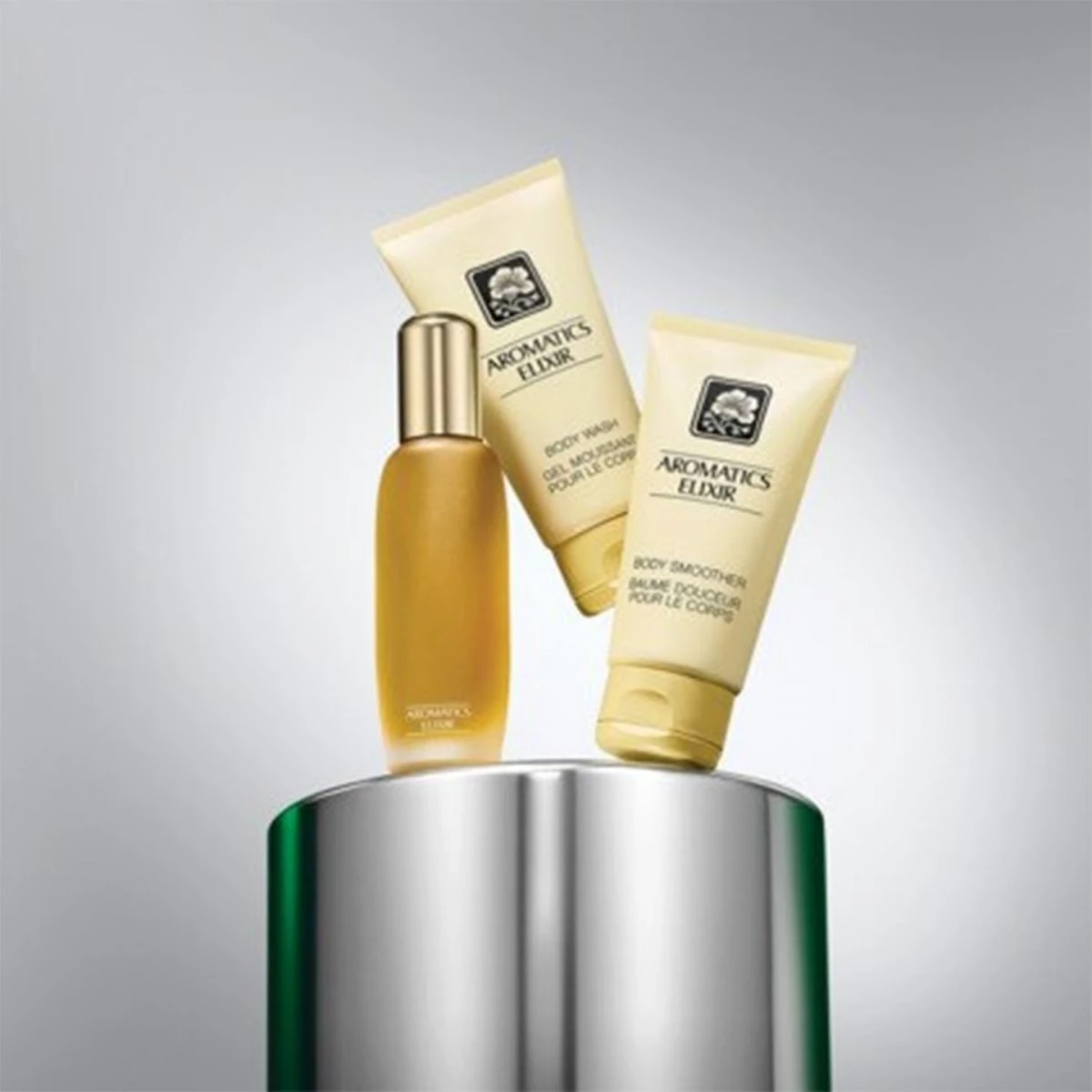 - Aromatics Elixir™ Gel Moussant pour le Corps – 75ml : Une peau nettoyée et soyeuse grâce à ce gel douche légèrement parfumé aux notes d'Aromatics Elixir."