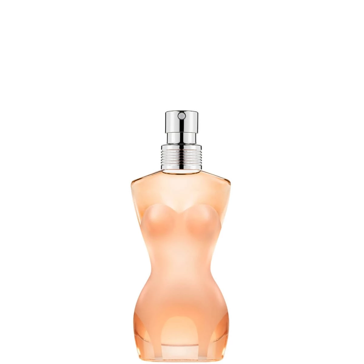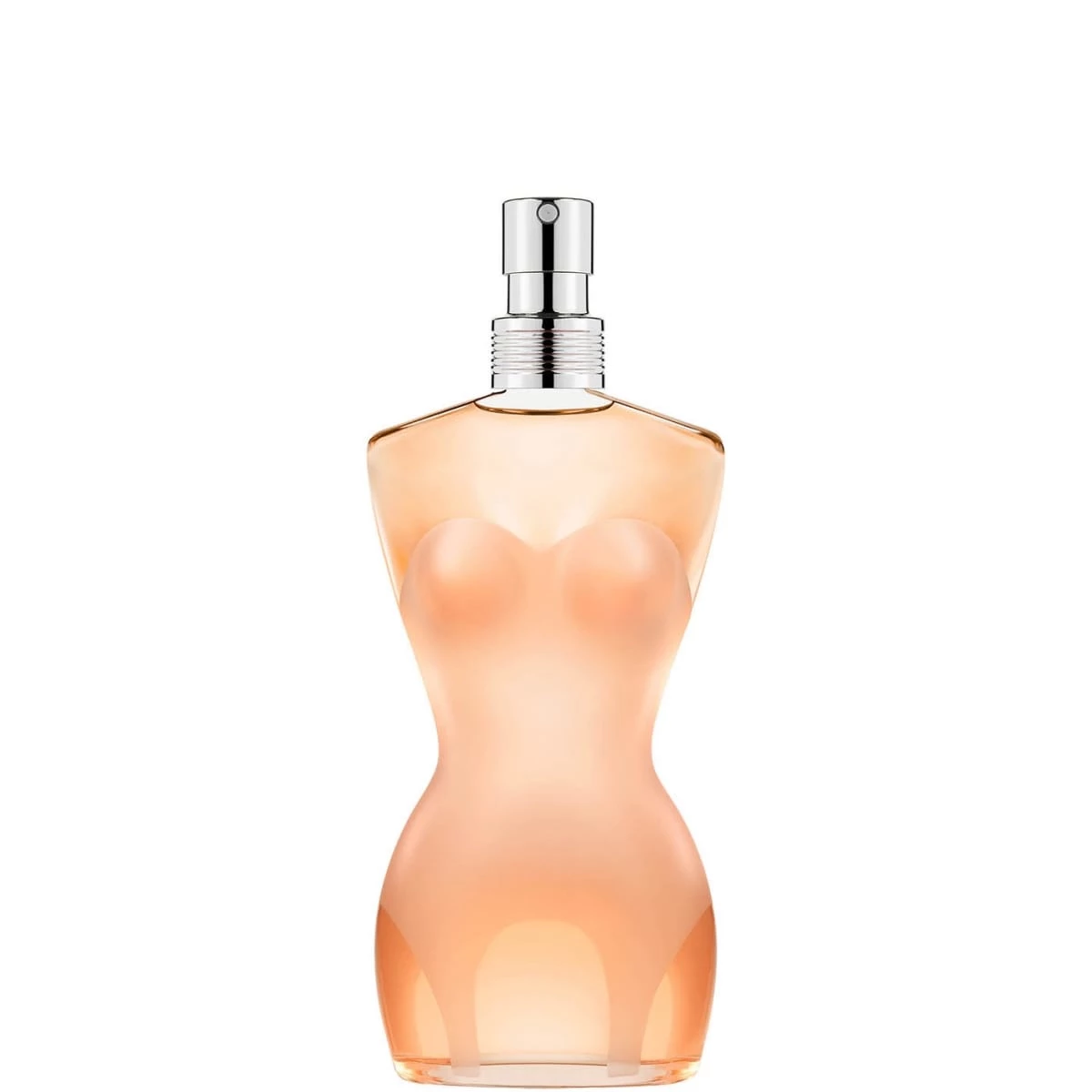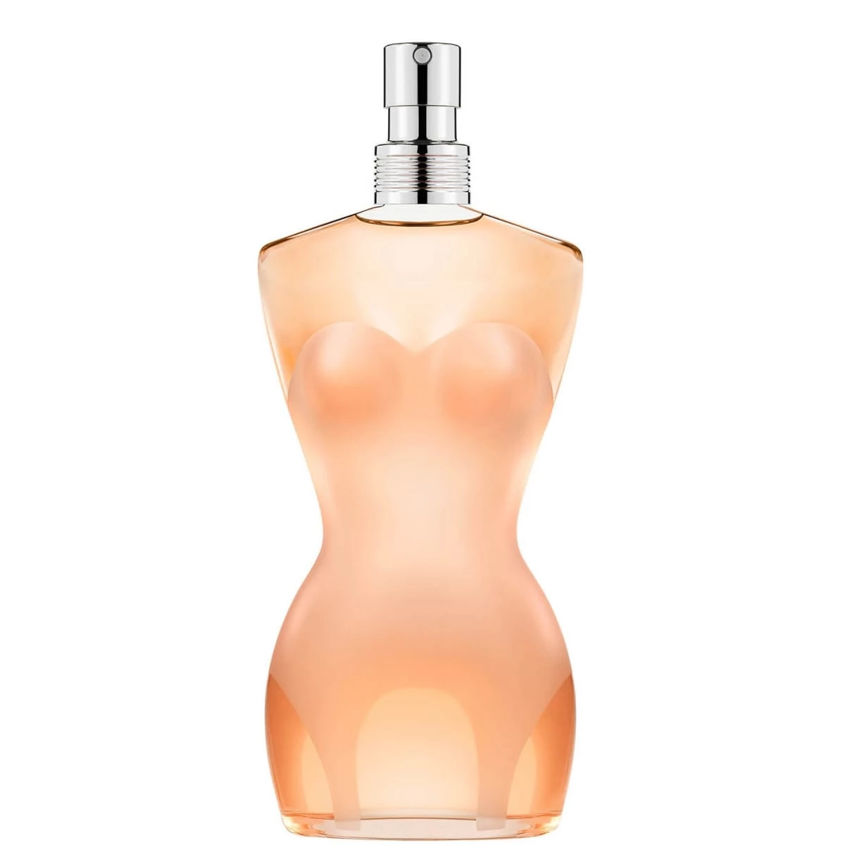 L’eau de toilette Classique Jean Paul Gaultier est proposée dans un flacon en forme de buste aux lignes ultra sensuelles. Revêtue d’un corset emblématique de la maison Jean Paul Gaultier, la silhouette affiche une taille, des hanches et une poitrine marquée pour révéler sa féminité. Le jus en lui-même révèle une couleur pêche qui évoque toute la sensualité et la tendresse de la peau d’une femme.
