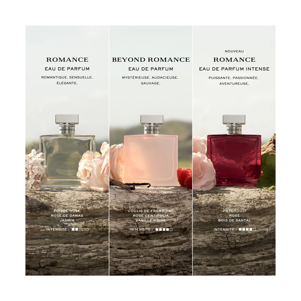 Romance est une eau de parfum florale fraîche, sensuelle et pétillante pour la femme qui croit au romantisme.