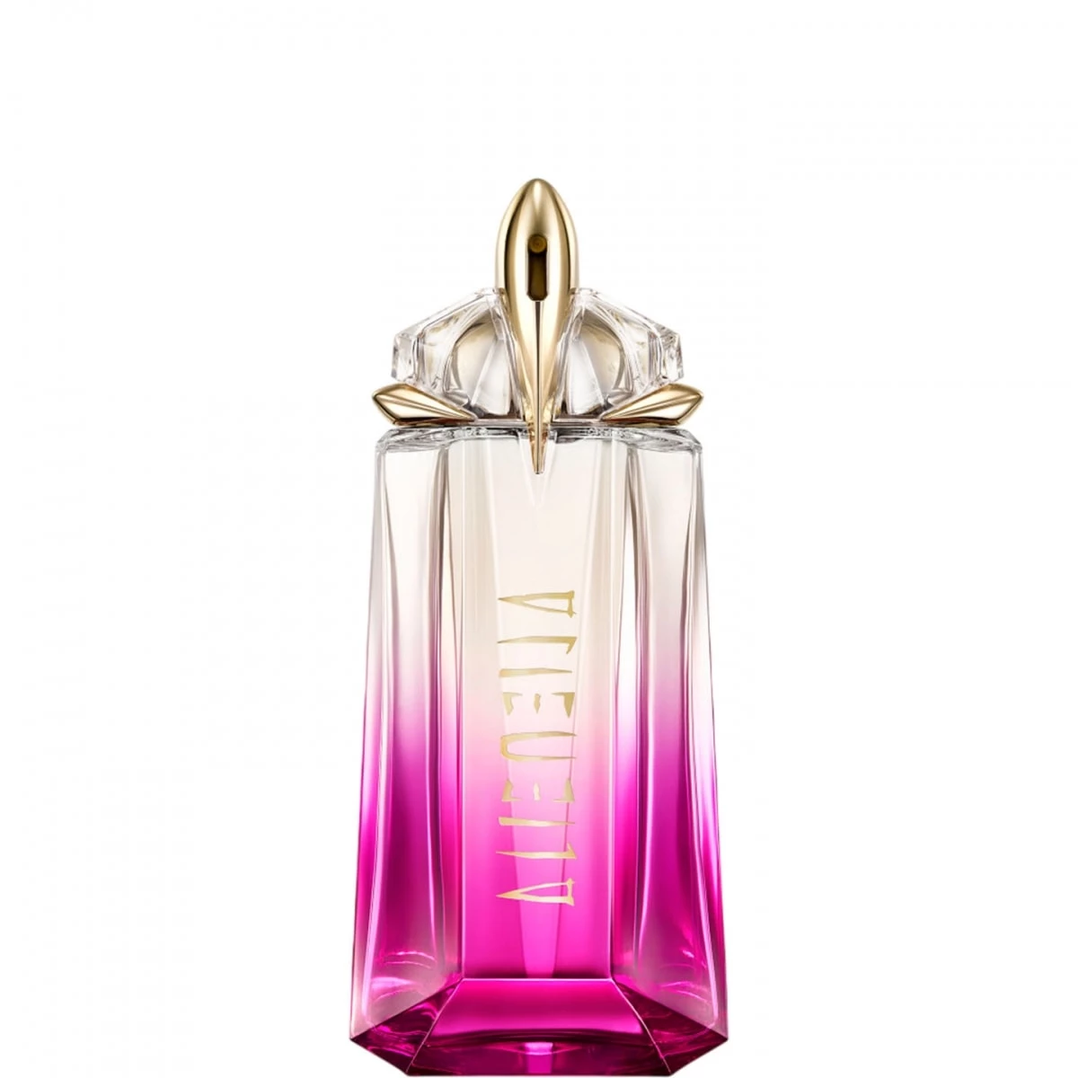 Inspiré par la vision rupturiste de MUGLER, le flacon emblématique à facettes incarne la gourmandise pure de la nouvelle signature framboise d’Alien Pulp à travers un ombré allant d'un rose vibrant à un cristal clair.