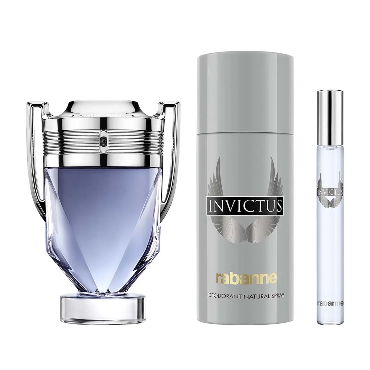 L'Eau de Toilette iconique Invictus, associée à son déodorant spray et vaporisateur de voyage pour vous accompagner dans toutes vos aventures. Le héros absolu.