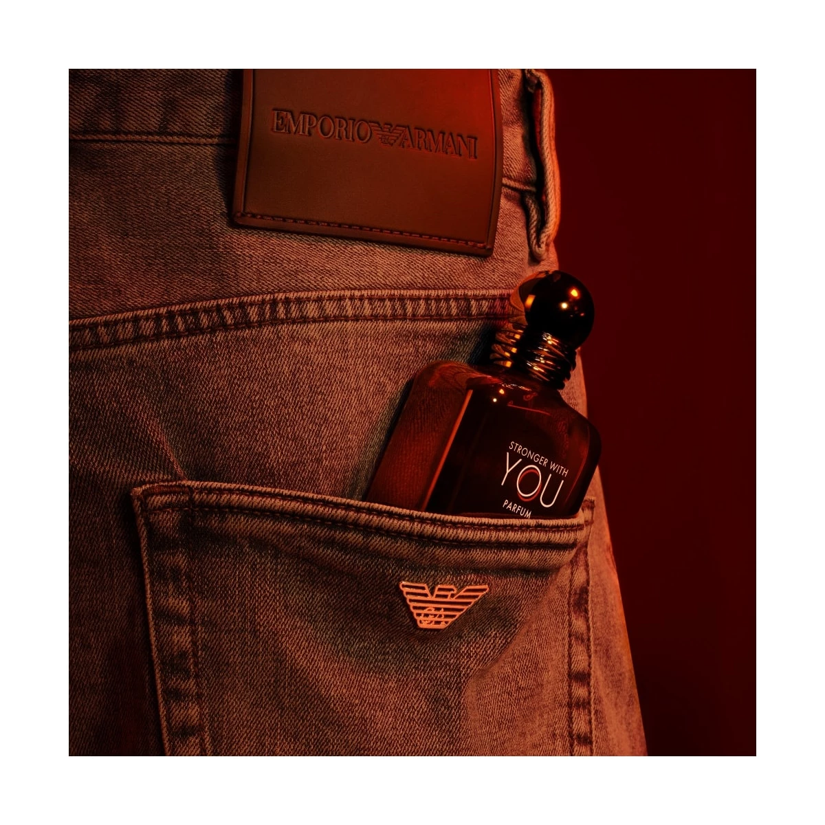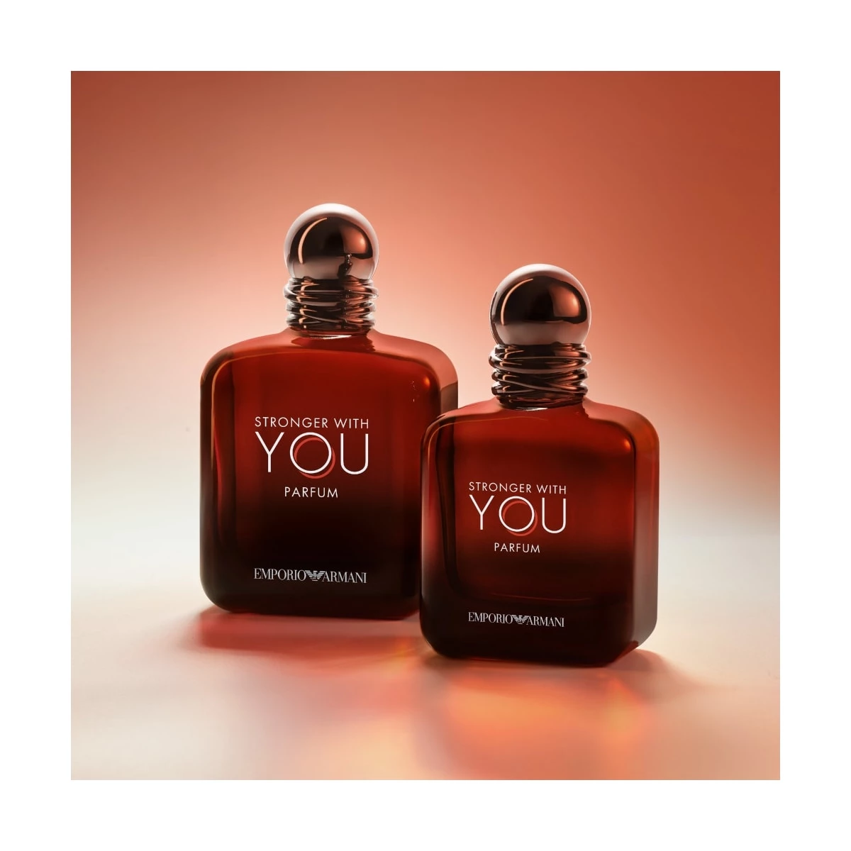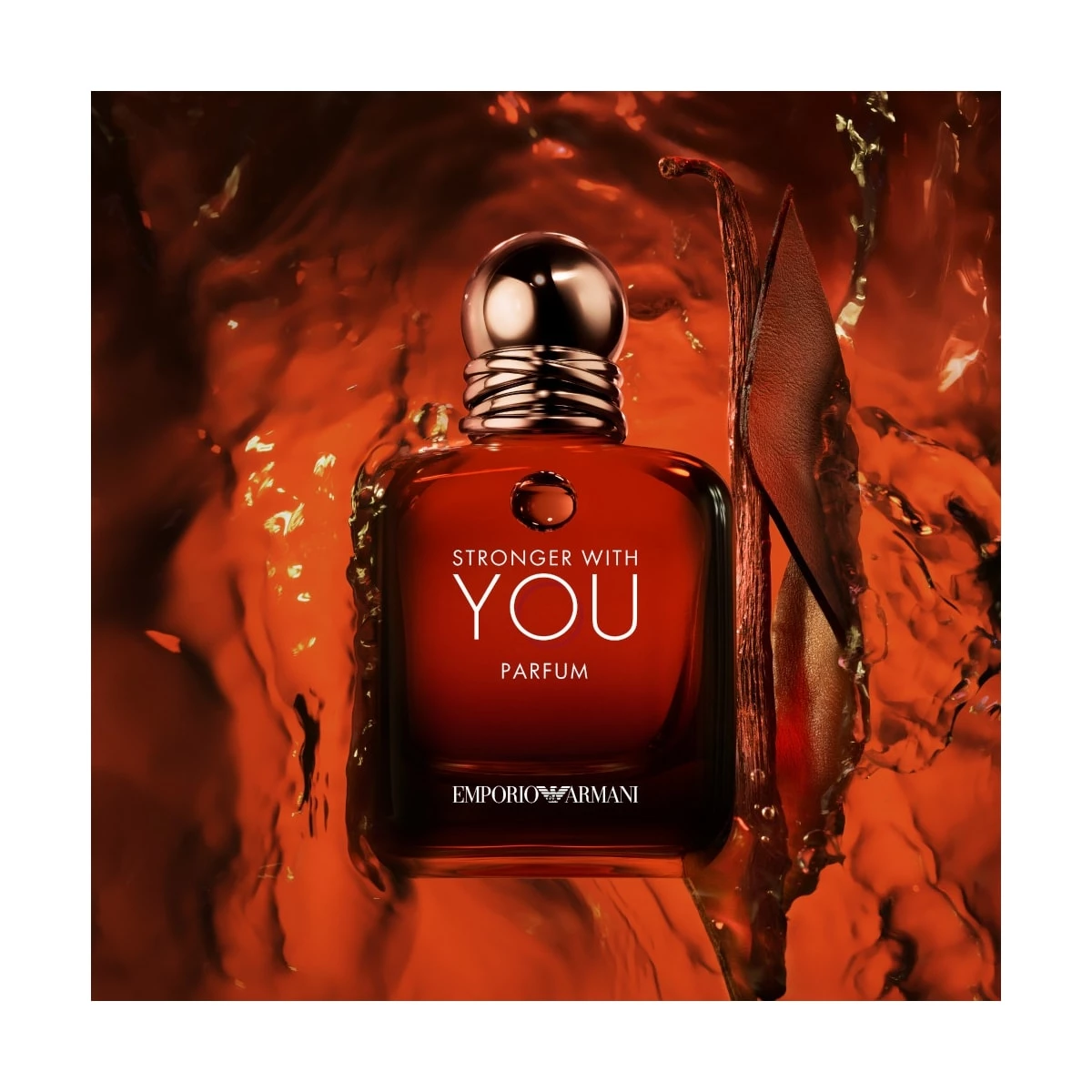 STRONGER WITH YOU PARFUM est présenté dans un flacon au design épuré très masculin et aux tonalités ambrées qui ne laissent aucun doute sur son intensité.
