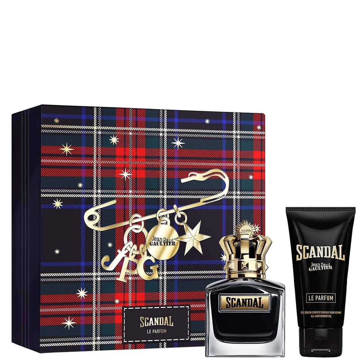 Pour ouvrir les festivités, Jean Paul Gaultier revêt son coffret Scandal Pour Homme Le Parfum et son boisé ambré d’un tartan audacieux.
