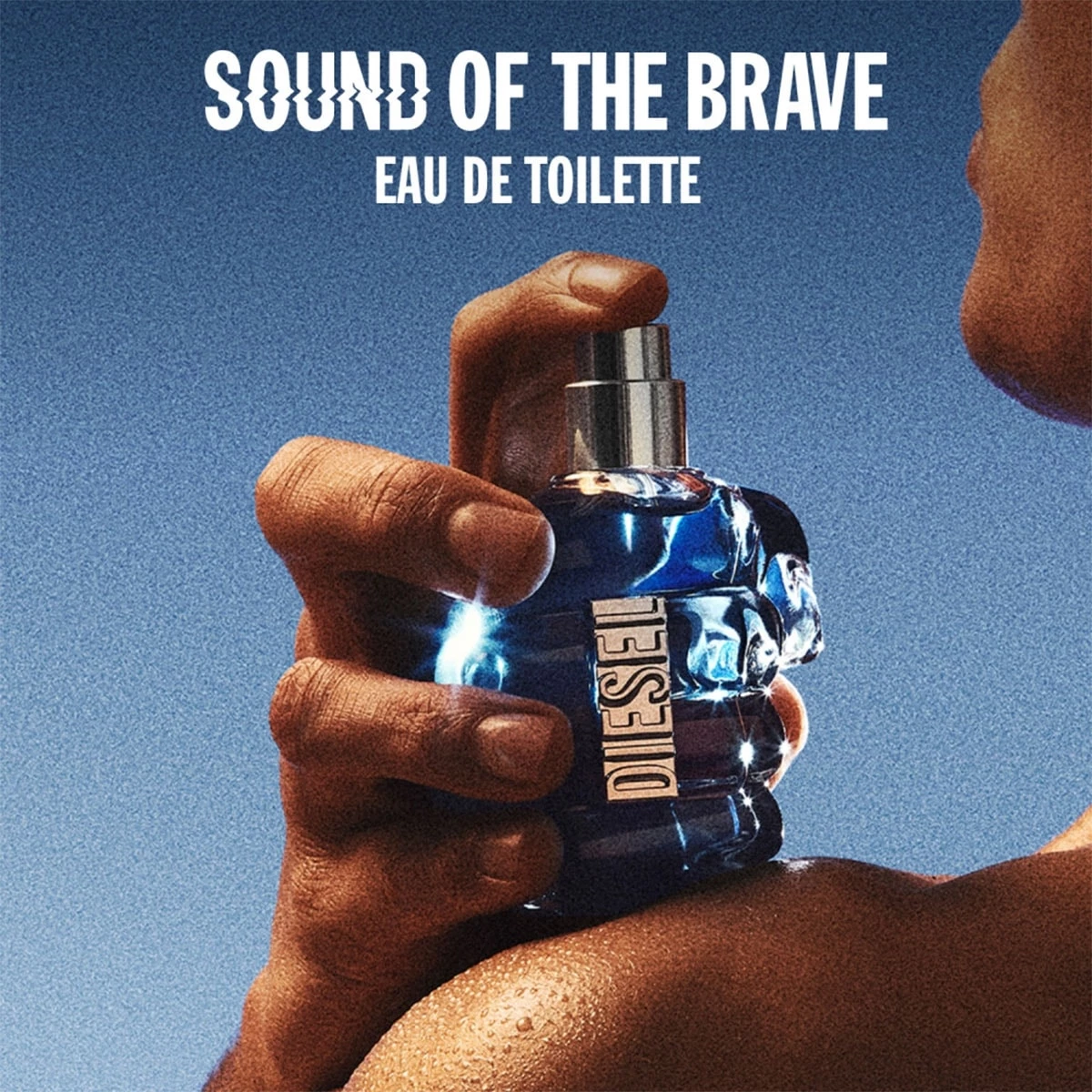 Prenant la forme d’un poing serré orné de l’iconique logo Diesel, le saisissant flacon bleu foncé symbolise le fait de saisir la vie à pleines mains.