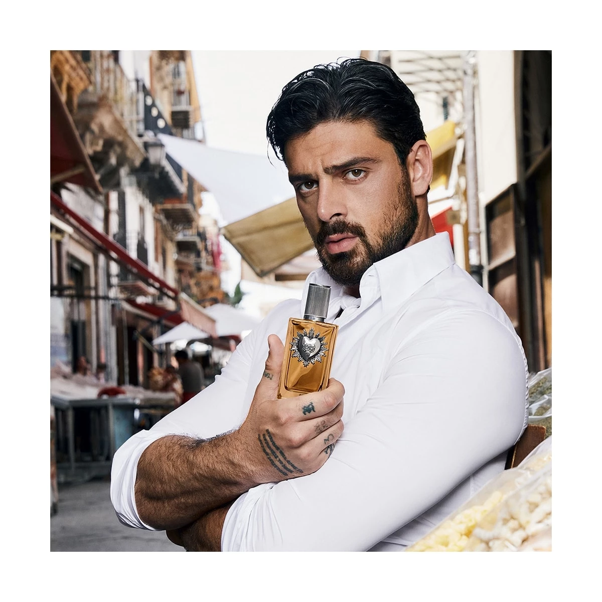 Dolce&Gabbana Devotion For Men Parfum célèbre l’essence de l’élégance masculine avec une touche de sensualité encore plus affirmée.