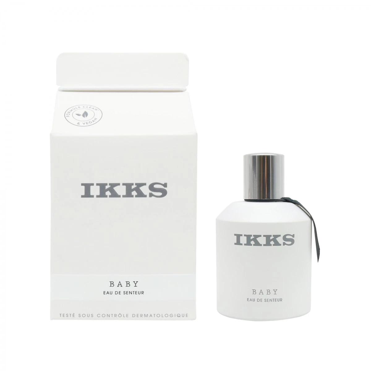 Un étui en forme de boîte de lait, un flacon laqué blanc brillant. Un style sobre et décalé qui illustre parfaitement les valeurs de la marque.