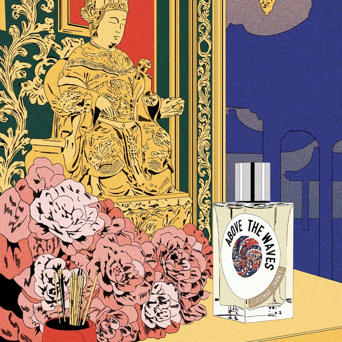 Celle qui relie la terre, la mer et le ciel est à la fête, tout étincelante de bergamote lumineuse. Pleins d’adoration, les fidèles fixent la déesse devant eux. Elle s’élève haute et sereine au-dessus des mortels dans un chaud-froid de cardamome et d’encens.