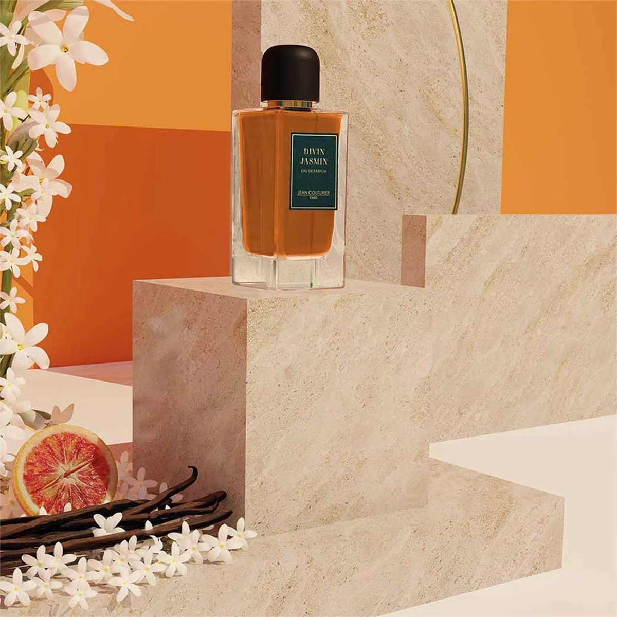 Au cœur de cette création, le Jasmin Sambac dévoile ses facettes éclatantes et fraîches, capturant la lumière dans chaque pétale.