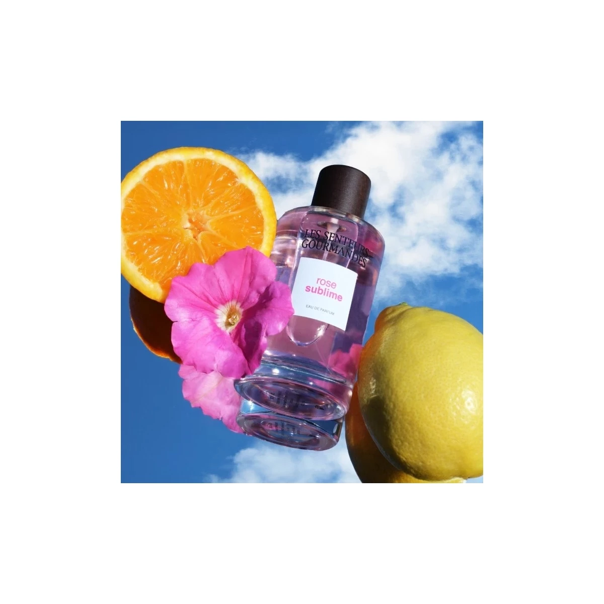 ROSE SUBLIME célèbre la fraîcheur florale et fruitée. Les notes de tête de bergamote, mandarine, citron et orange apportent une vivacité rafraîchissante et éclatante.