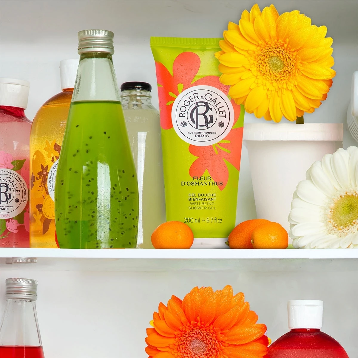 Découvrez la gamme de produits bain et corps bienfaisants Fleur d'Osmanthus. Après avoir utilisé le Gel Douche et appliqué le Lait pour le Corps , parfumez-vous avec votre Eau Parfumée Bienfaisante pour un sillage prolongé et enveloppant."