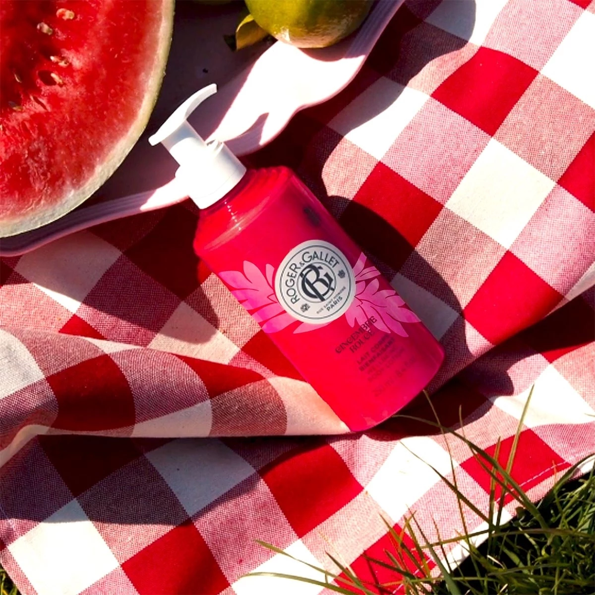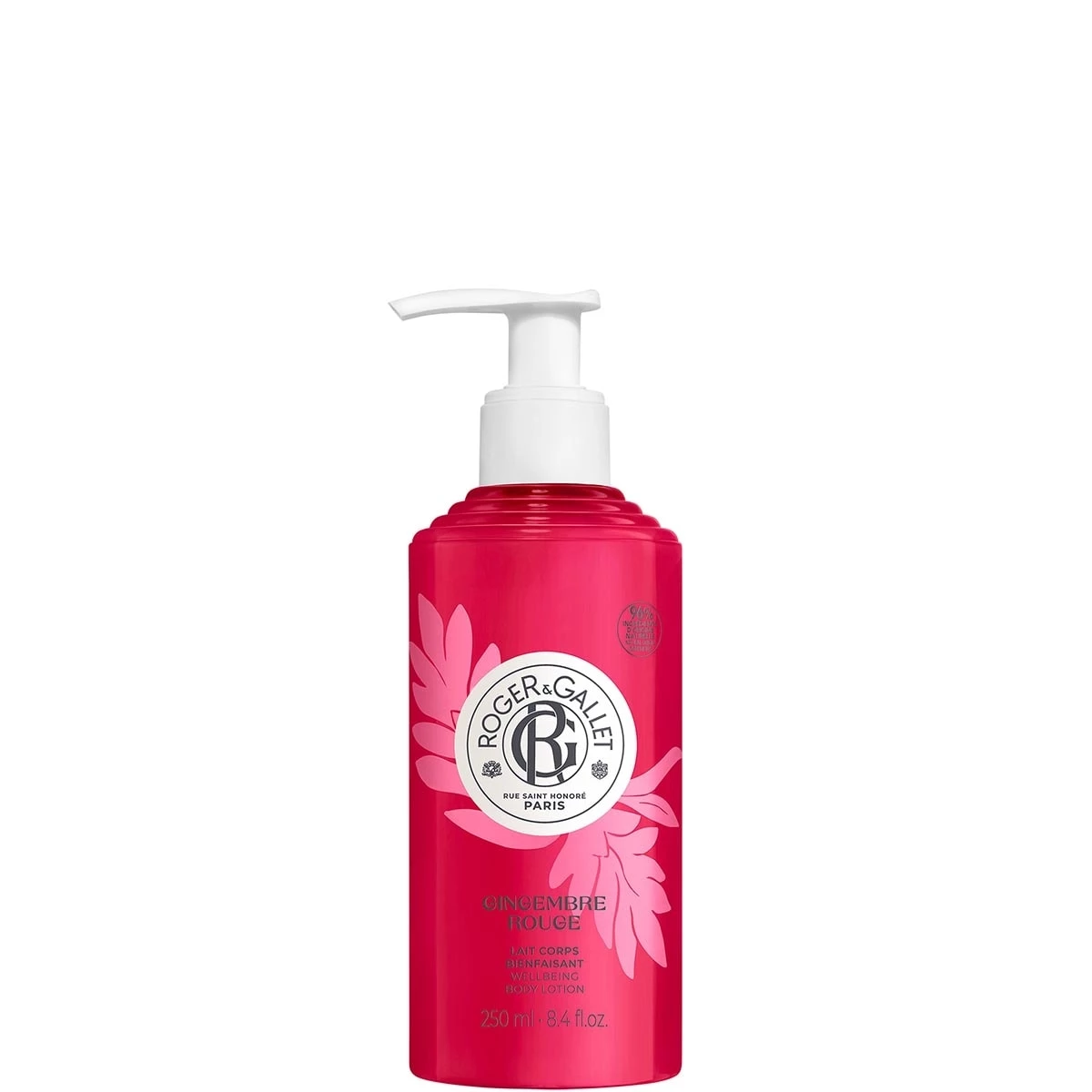 Le Lait Corps Gingembre Rouge de Roger et Gallet se décrit comme gourmand et pétillant. Composé d'extrait naturel de gingembre aux vertus énergisantes et de beurre de Karité, le Lait Corps Bienfaisant Gingembre Rouge nourrit et offre à la peau une hydratation 24h. Grâce à sa texture légère, le lait pénètre rapidement et laisse votre peau hydratée et agréablement parfumée aux notes fruitées de Gingembre Rouge.