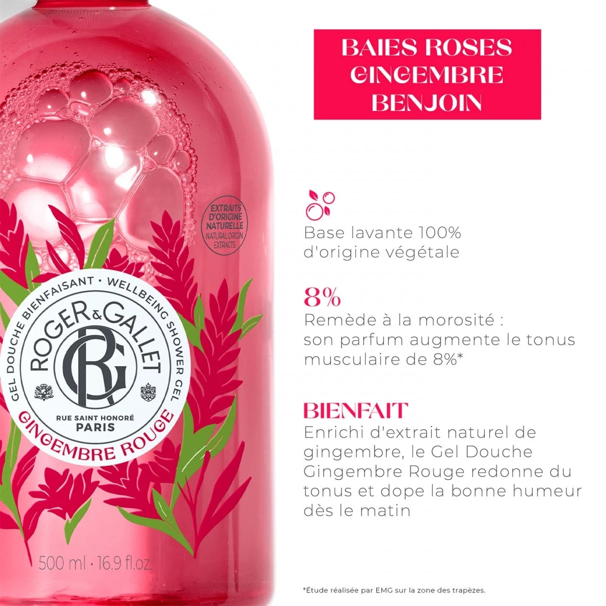 Sous la douche ou dans le bain, sa mousse fine et généreuse laisse votre peau hydratée et délicieusement parfumée aux notes fruitées et sensuelles de Gingembre Rouge.