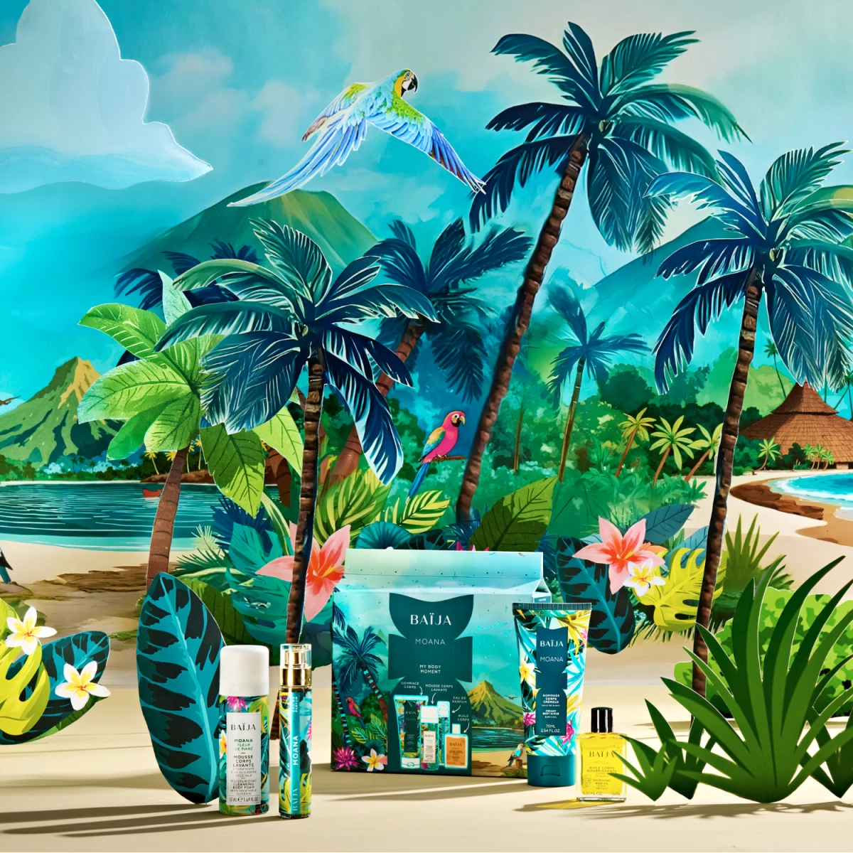 Retrouvez dans ce coffret une mousse de douche onctueuse, un gommage corps fondant, une huile corps nourrissante, ainsi qu’une eau de parfum fleur de thiaré ensoleillée.