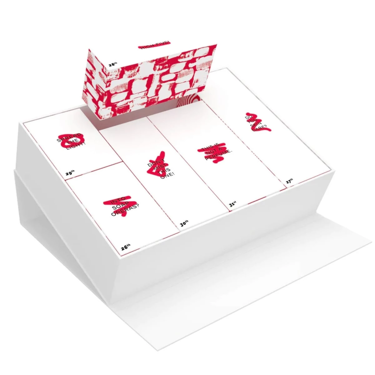 Découvrez le tout premier calendrier de l'avent parfum Juliette has a gun, avec un twist ! Contrairement aux calendriers de l’avent classiques celui-ci s’ouvre après le 25, du 26 au 31 décembre, pour prolonger la magie de Noël jusqu’à la nouvelle année.