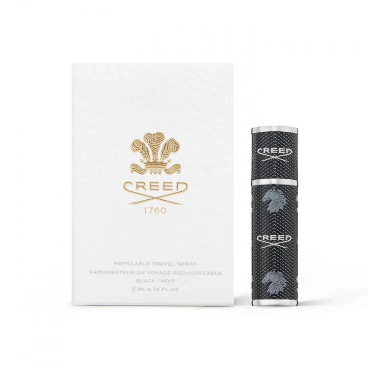 Creed Black, l'accessoire de voyage idéal qui vous permet de recharger votre vaporisateur Creed en appuyant sur le dessus du flacon.