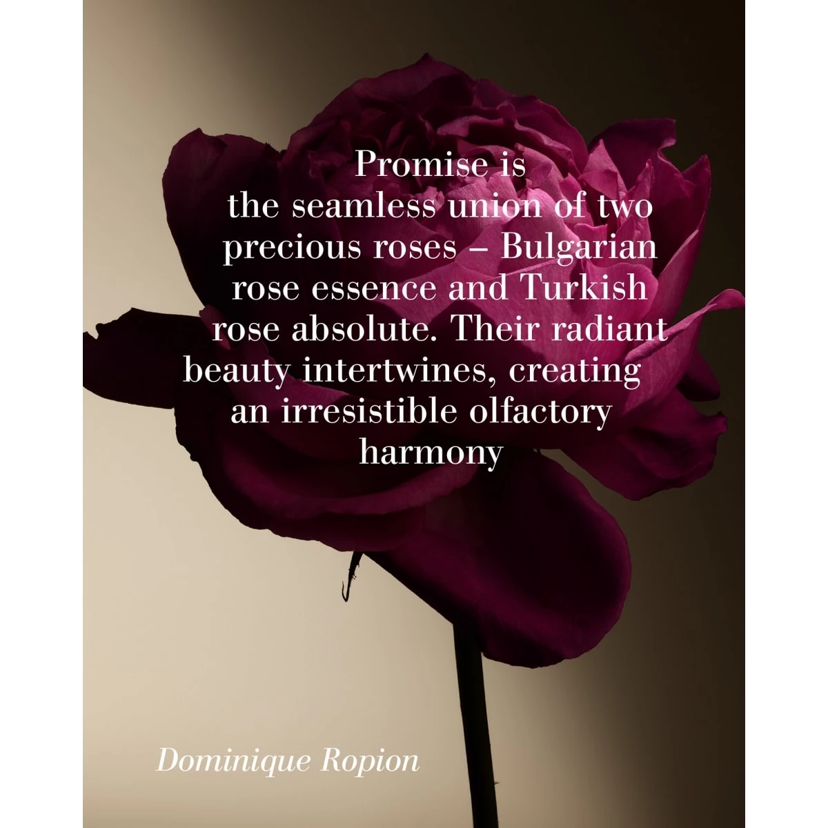 Frédéric Malle célèbre ce principe avec sa propre promesse, dont le battement est fait de deux variétés précieuses de rose : l'Essence de Rose de Bulgarie et l'Absolu de Rose de Turquie sont relevées par la pomme, le poivre noir et le clou de girofle et liés à une base sensuelle de patchouli, de cypriol et de labdanum ; un accord aussi incassable et invisible qu'un voeu.