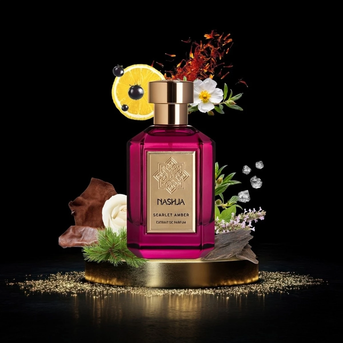 Un sillage chaud d'ambre rouge enveloppe la peau d'une élégance magnétique.