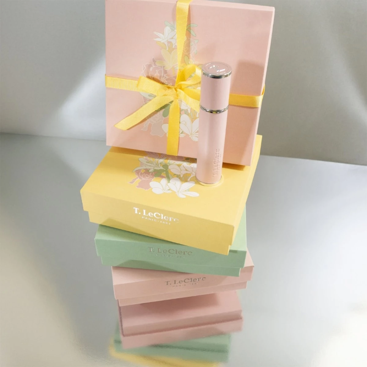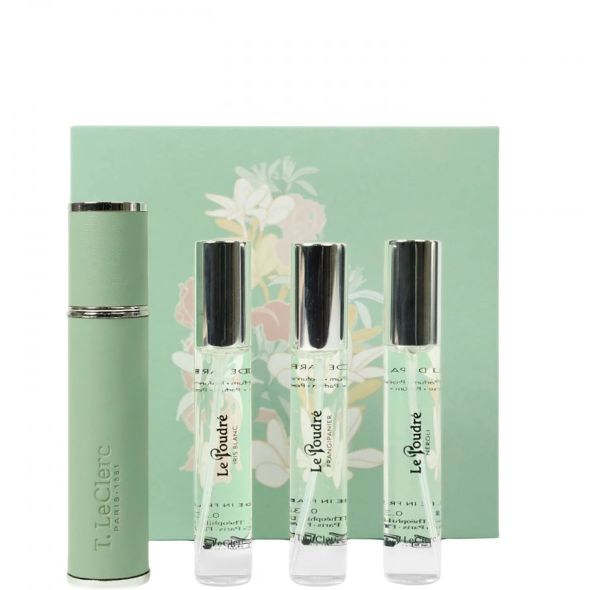 Ce coffret se compose d'un vaporisateur vert et de trois flacons 10 ml pour découvrir la collection Le Poudré :