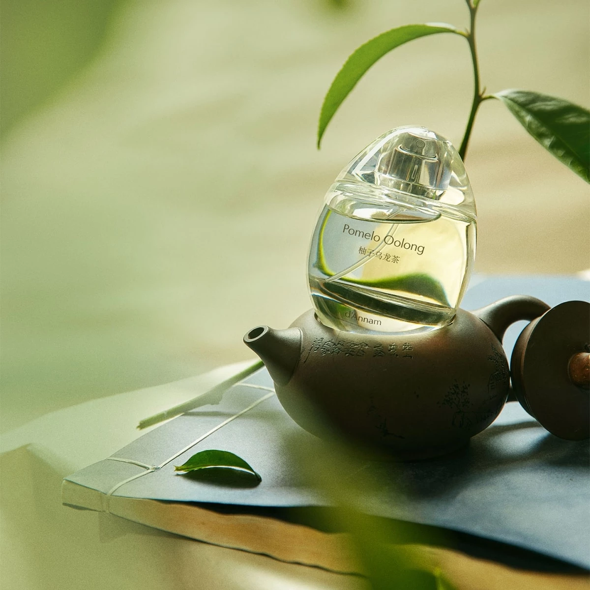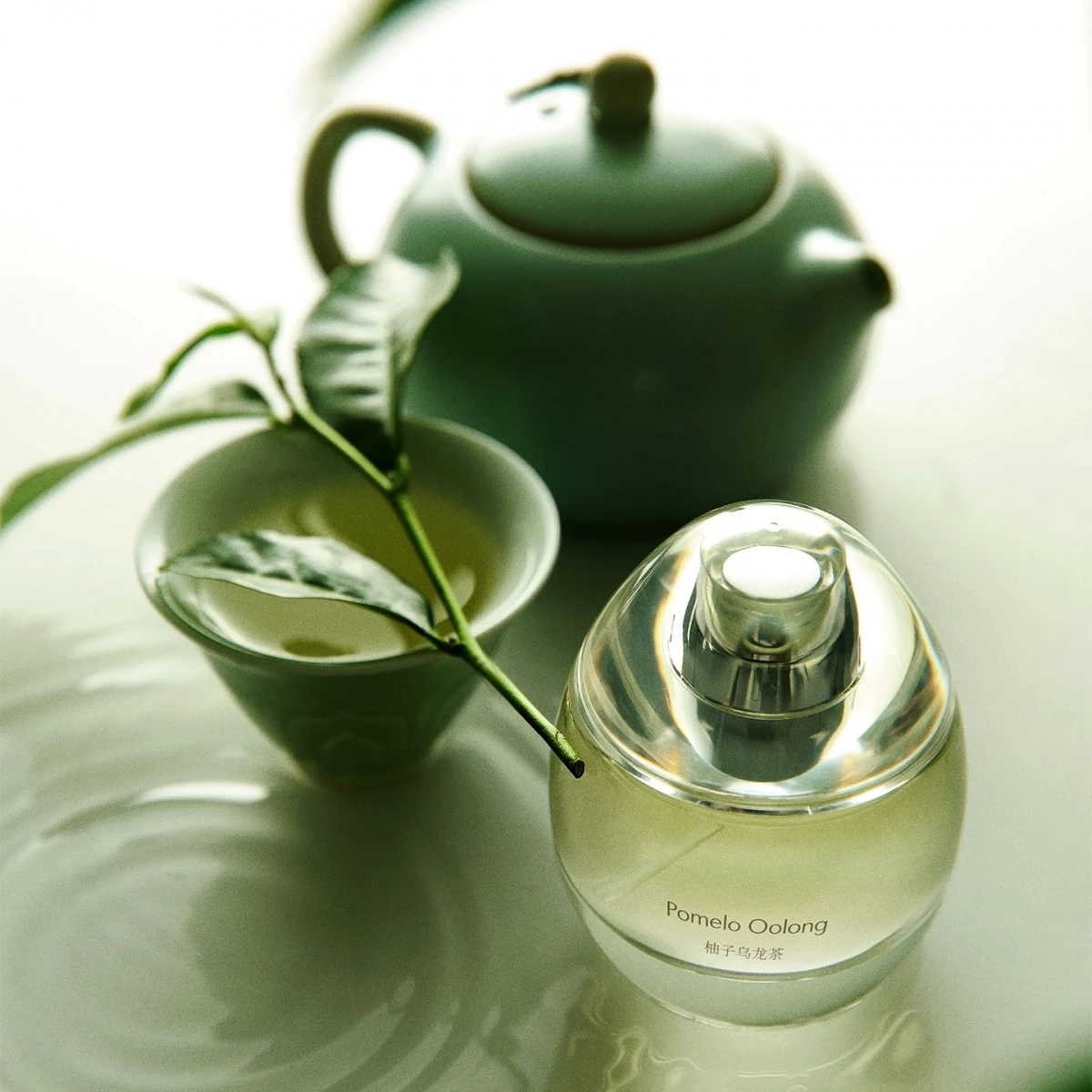 Pomelo Oolong Eau de Parfum capture la complexité raffinée du thé oolong, enrichie de notes fraîches de pomelo et de fleurs blanches.