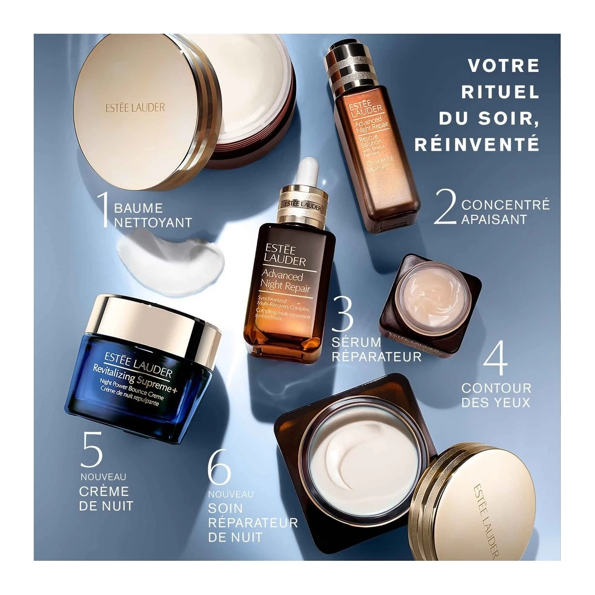 La nuit est un moment idéal pour prendre soin de votre peau. Plus réceptif aux principes actifs, l’épiderme se régénère en profondeur pour afficher une apparence plus jeune et éclatante au réveil. C’est pourquoi Estée Lauder a créé une gamme de soins anti-âge spécifiquement conçue pour réparer et sublimer votre peau durant votre sommeil. Dotée de technologies de pointe, la collection Advanced Night Repair propose des soins hautement régénérants et réparateurs pour le visage et le contour des yeux. Elle se compose de sérums, de crèmes et de masques dédiés à votre routine de beauté du soir, mais également de soins nettoyants destinés à l’hygiène quotidienne de votre visage.