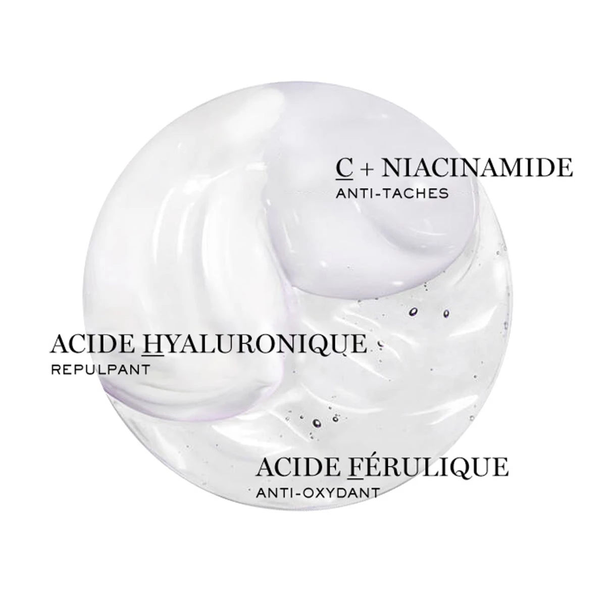 Pour la première fois, les laboratoires Lancôme réunissent dans une triple dose 3 actifs dermatologiques réputés incompatibles (Acide Hyaluronique, Vitamine C + Niacinamide, Acide Férulique) pour rénover la peau à tous les niveaux :