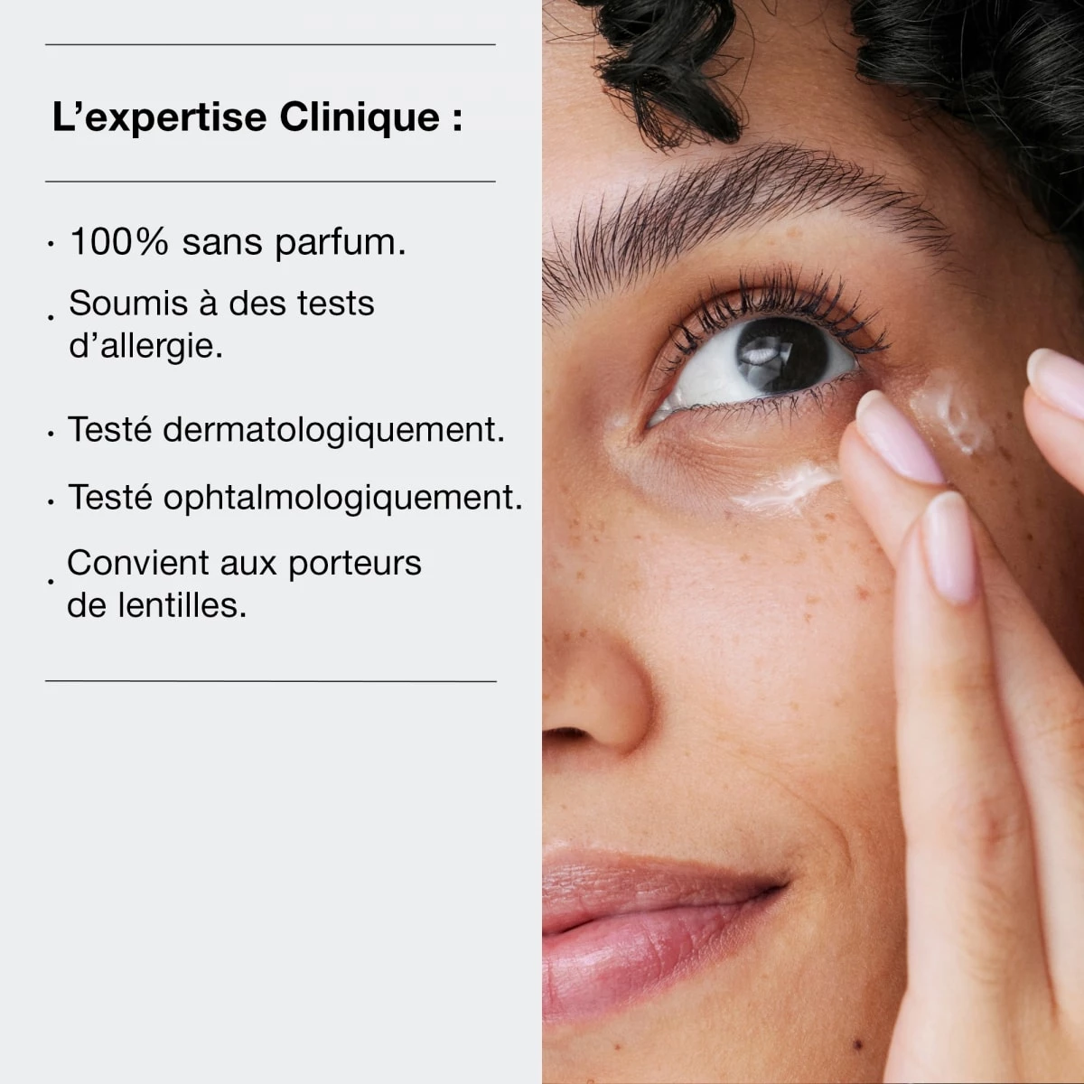 Ce soin hydrate la peau délicate du contour de l’œil et aide à réduire l'apparence des poches, des cernes et des ridules de déshydratation.