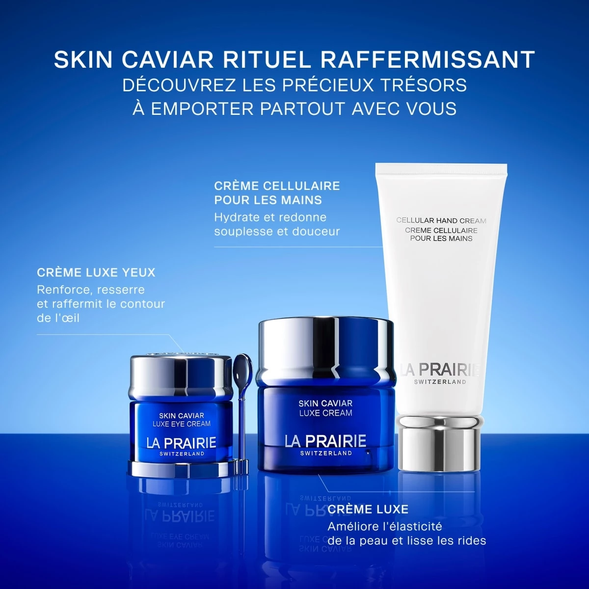 - SKIN CAVIAR CRÈME LUXE YEUX : cette crème yeux riche renforce, tonifie et raffermit le contour des yeux, tout en l'hydratant en profondeur.