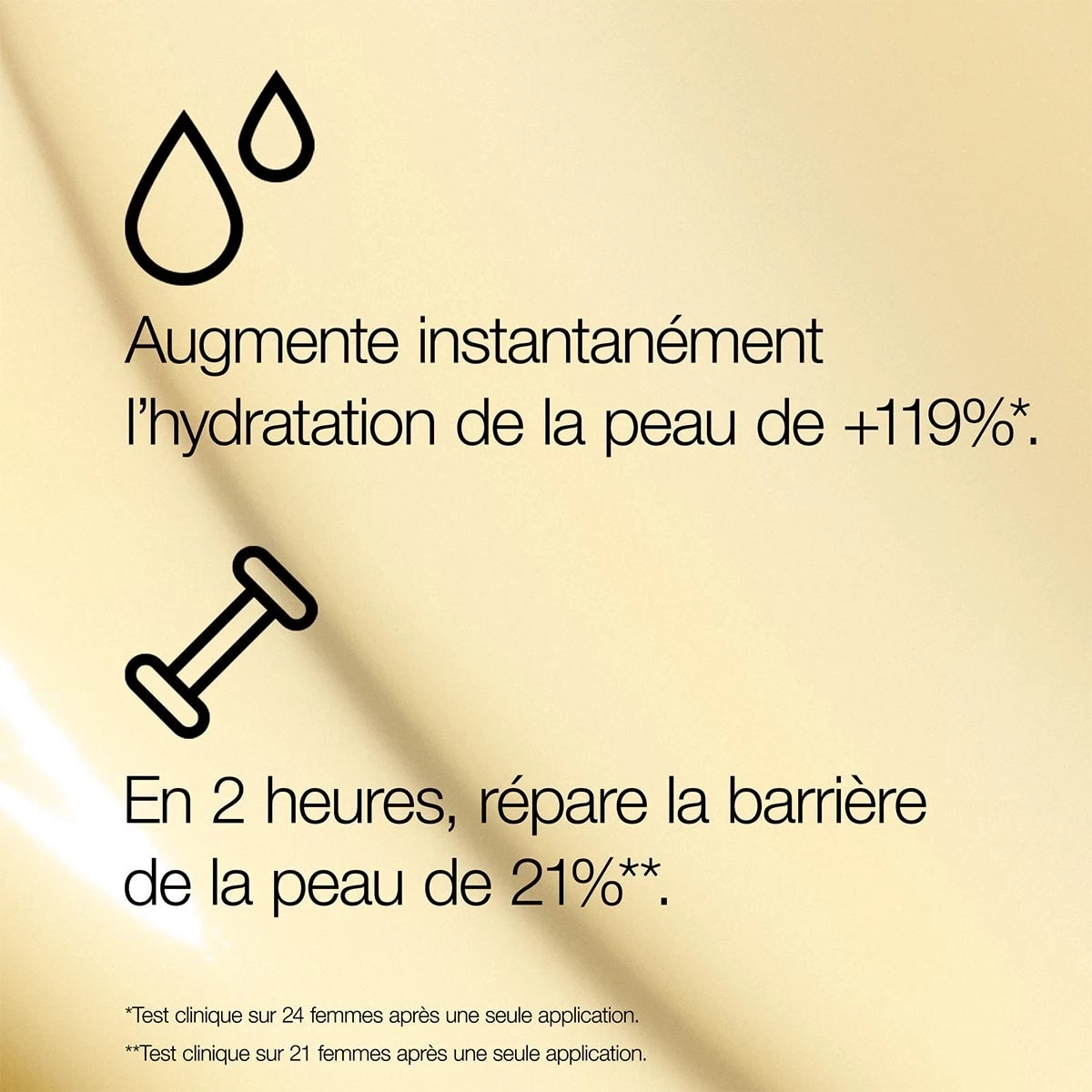 Sa formule enrichie de pro-lipides et de glycérine rétablit l’équilibre entre la phase aqueuse et lipidique du film hydrolipidique de la barrière cutanée pour une peau visiblement plus saine et hydratée.