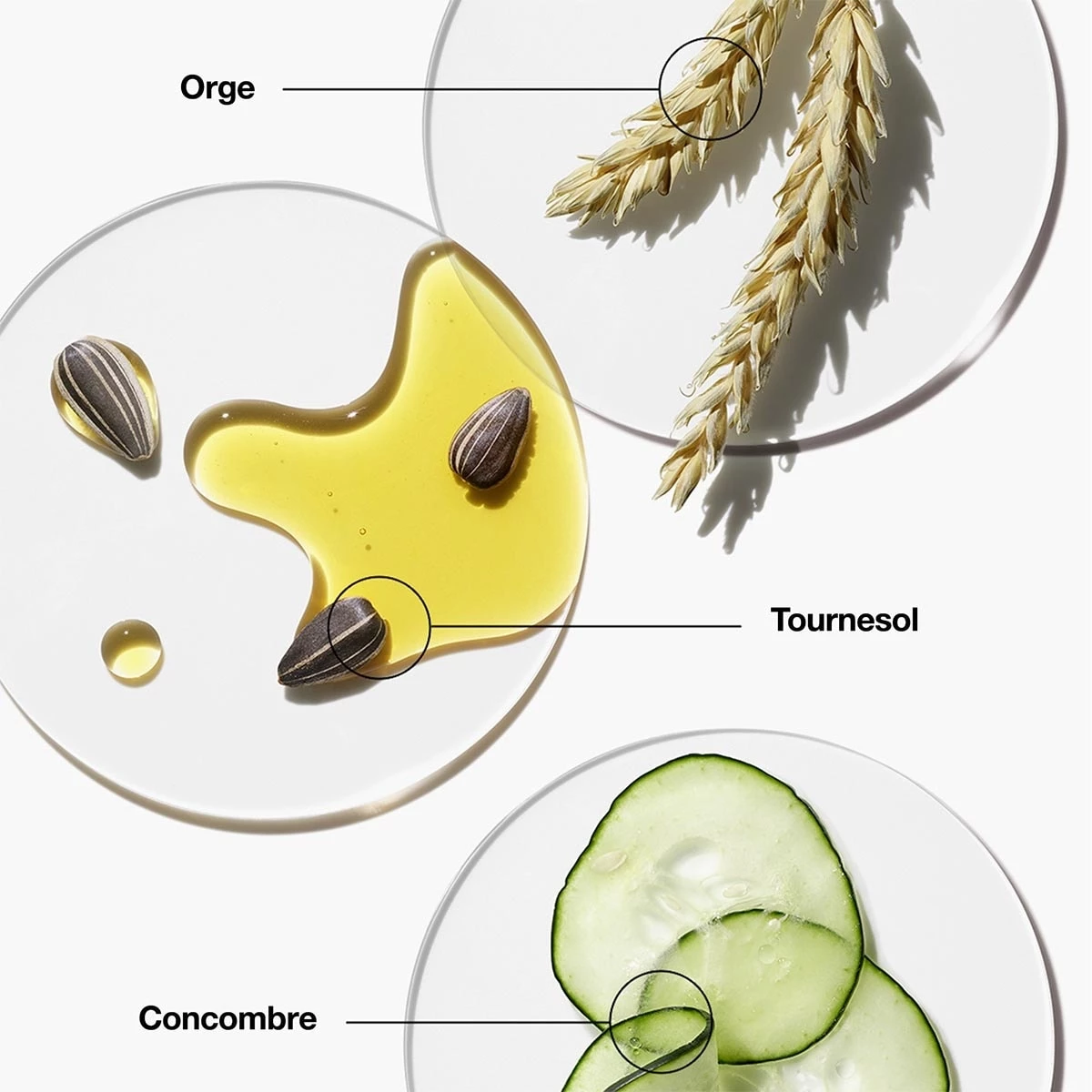 - 3 pro-lipides : un mélange d’extraits d’orge, de tournesol et de concombre pour hydrater et équilibrer la barrière cutanée.