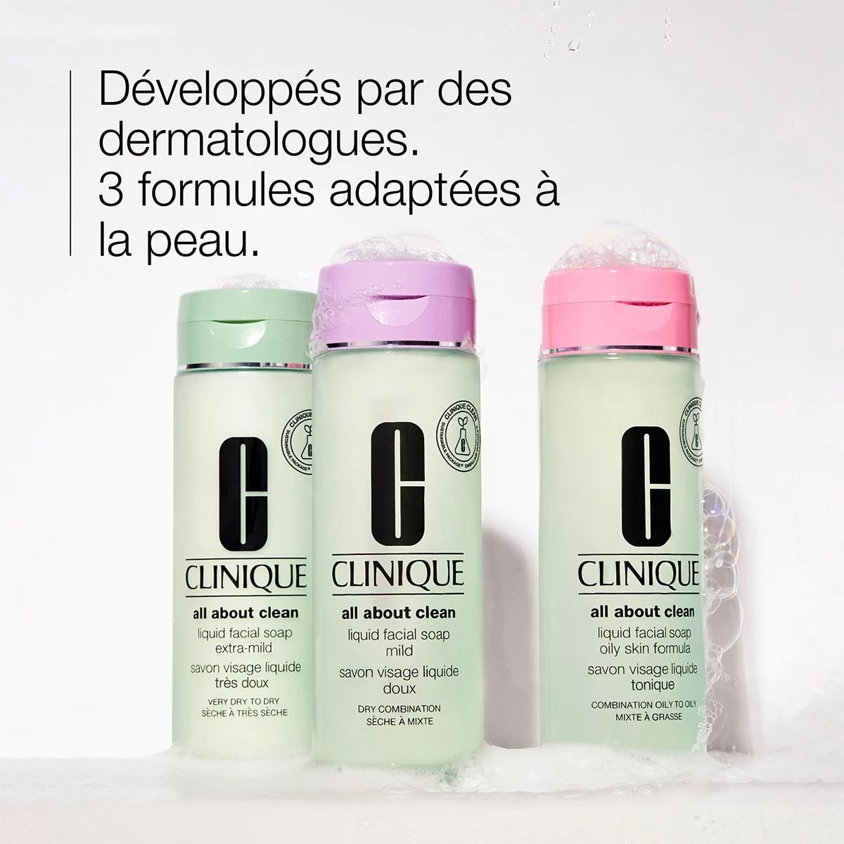 - Étape 1 : Nettoyer avec les Savons Visage Liquides All About Clean™.