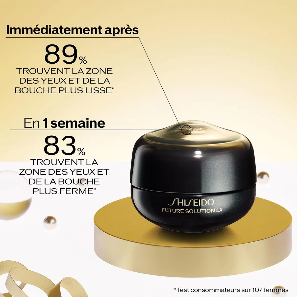 Réduit les rides et l’affaissement des paupières, pour un look plus rayonnant et résilient.