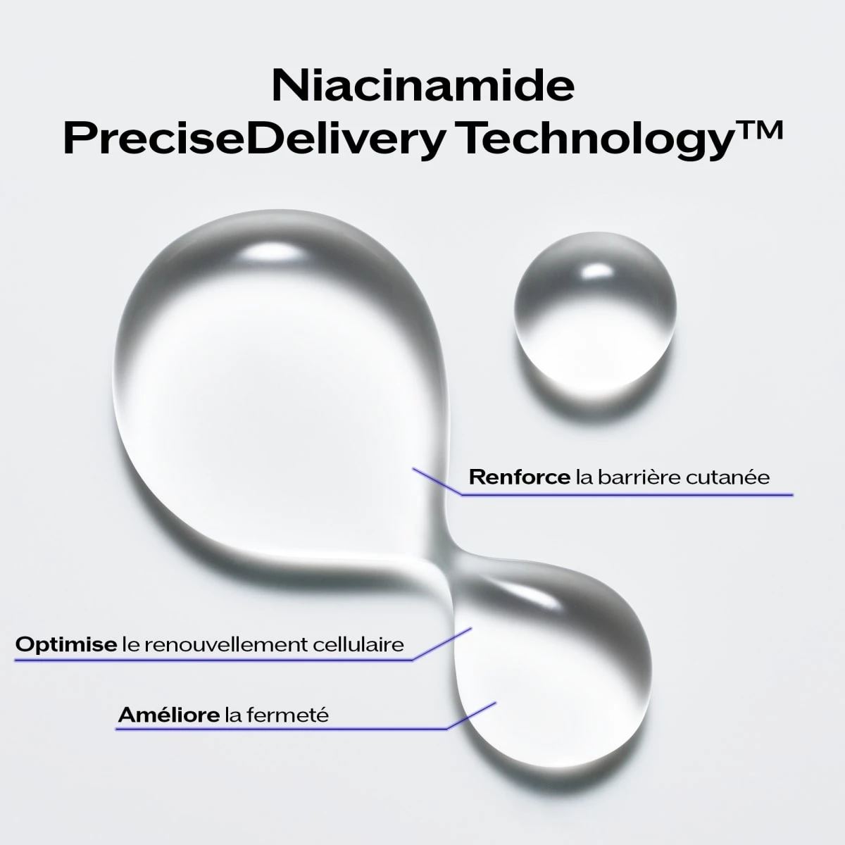 - Libération précise et contrôlée du Niacinamide à la bonne profondeur de la peau**, maximisant ainsi sa pénétration et son efficacité.