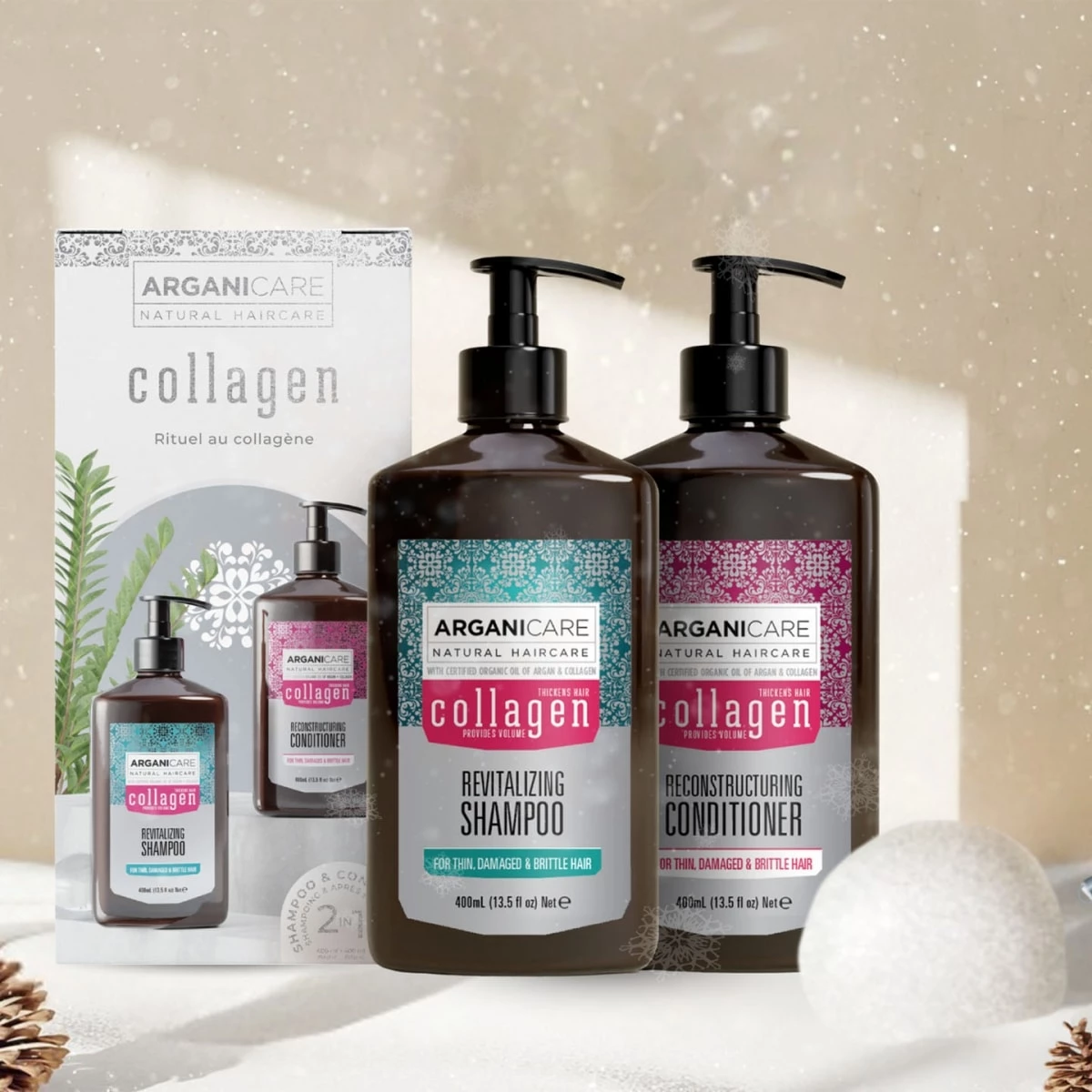 - Le shampooing revitalisant ARGANICARE au collagène est enrichi avec de précieuses huiles biologiques de noix d’Argan. C’est la solution idéale pour nettoyer vos cheveux en douceur et maintenir leur taux d’hydratation naturel. Il nourrit et répare le cheveu en profondeur. Sa formulation unique, infusée au collagène agit sur le remplissage des brèches de la fibre capillaire, aide à régénérer l’intérieur du cheveu et lui apporte un joli volume amplifié. Le collagène reconstruit profondément la structure endommagée des cheveux fins, dévitalisés et fatigués. Il apporte des protéines nutritives et hydratantes. Vos cheveux sont visiblement plus sains et pleins de volume.