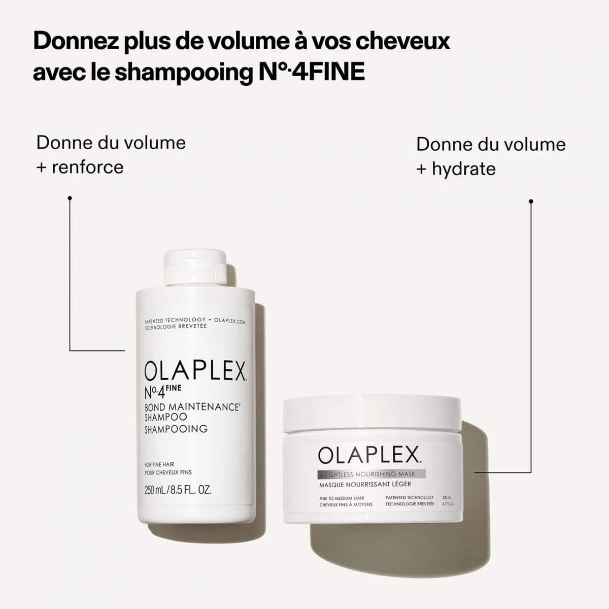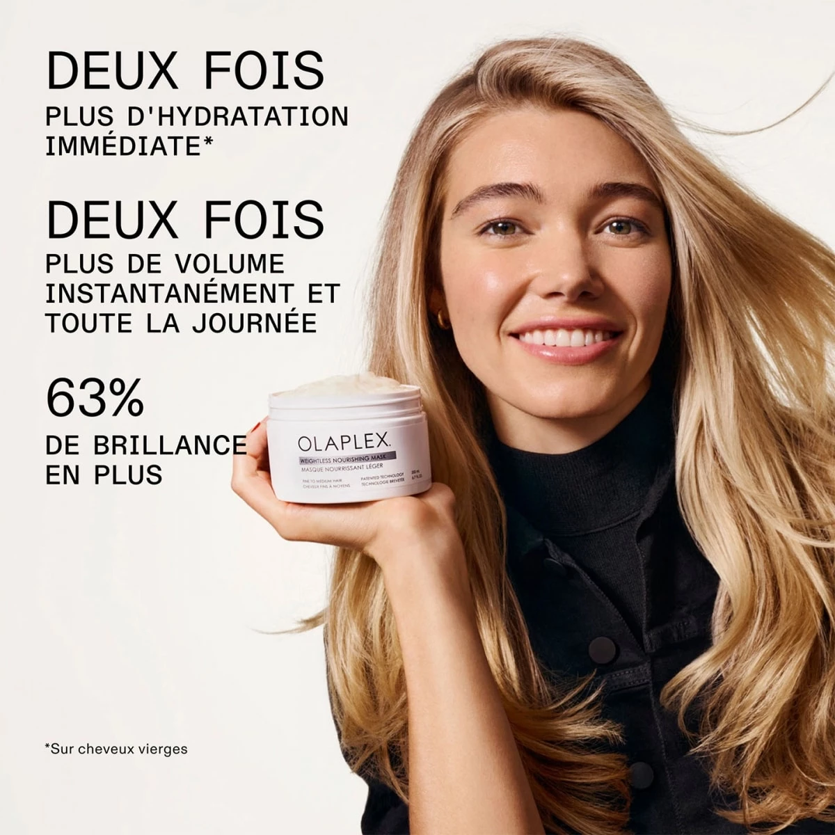 - OLAPLEX Volume Boost Complex™ : Crée un volume instantané et empêche la casse et la rupture des cheveux pour maintenir la longueur et la densité au fil du temps.