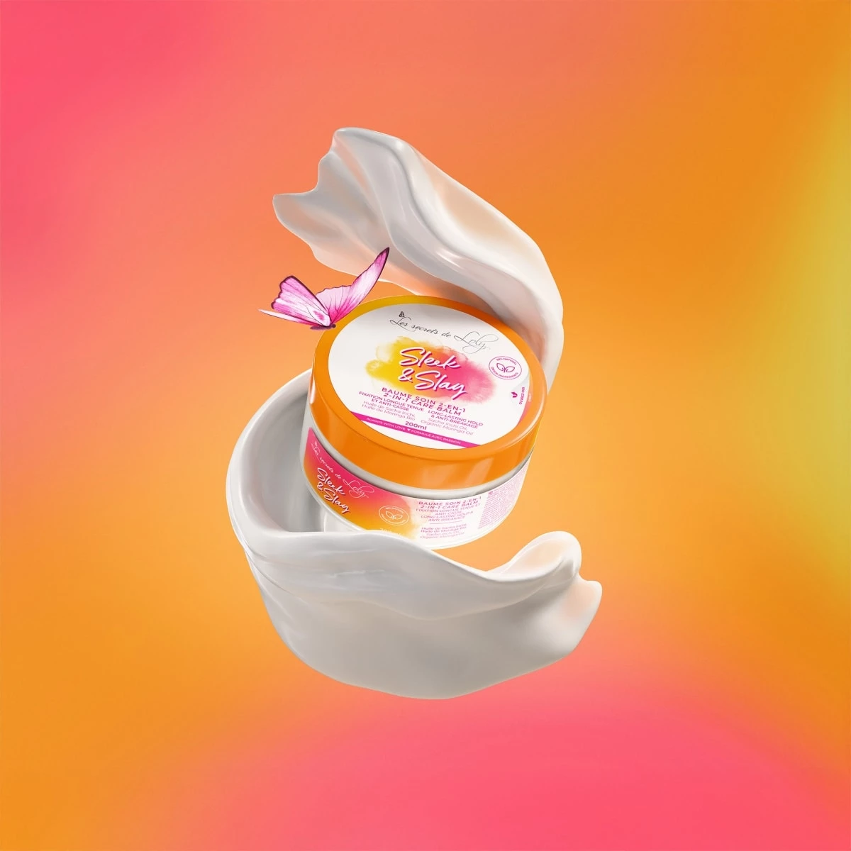 Sa texture baume fondante dompte frisottis et baby hairs sans effet carton ni résidus pour un fini net et brillant longue tenue.