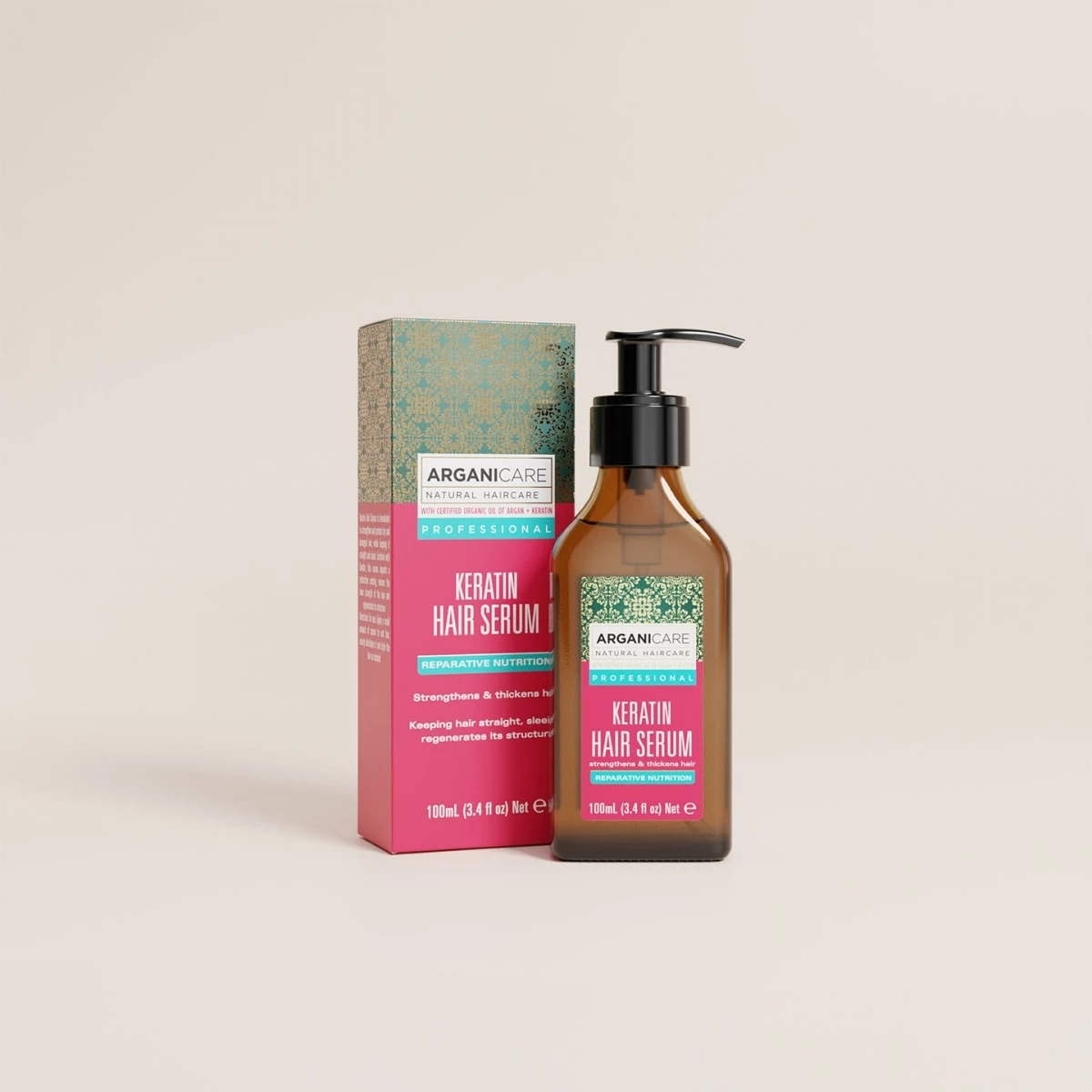 Le sérum professionnel à la Kératine ARGANICARE renforce et protège les cheveux secs et abimés, tout en les gardant lisses et soyeux.