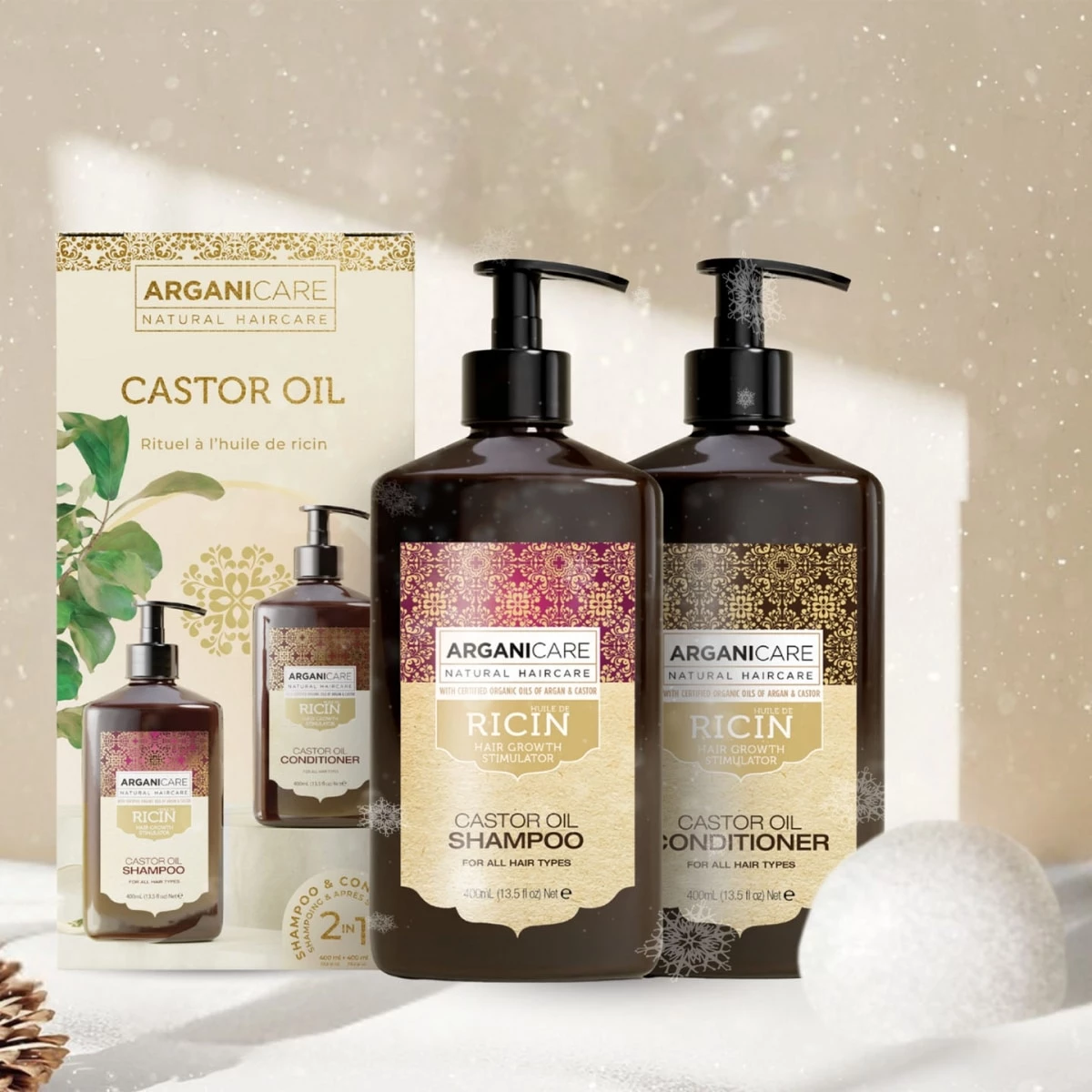 - L’après-shampoing reconstructeur ARGANICARE à l’huile de Ricin Bio est ultra nourrissant. Il contient de l'huile d'argan et de l’huile de ricin qui hydratent et traitent la cuticule du cheveu et le cuir chevelu en profondeur ; Il protège les cheveux fragilisés par les traitements chimiques et environnementaux du dessèchement et lutte contre les brèches et pointes fourchues. L'huile de ricin contient des acides gras et des omégas 6 et 9, qui favorisent la nouvelle croissance des cheveux, stimulent leur pousse et renforcent. Cette huile épaissit les cheveux naturellement. Elle améliore également la maniabilité et l'élasticité de vos cheveux qui apparaissent plus souples, brillants et en pleine santé.