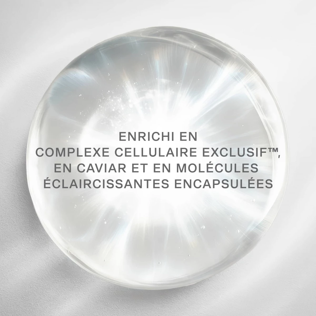 Enrichie en Complexe Cellulaire Exclusif™, en Caviar et en Molécules éclaircissantes, pour cibler la cause première de la formation des taches brunes et maintenir la structure d'une peau jeune.