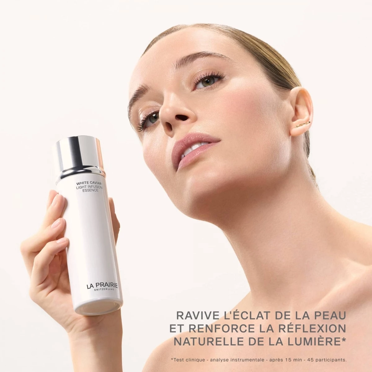 La Lotion Essentielle éclaircissante de La Prairie aide à corriger le teint terne tout en nourrissant et en repulpant la surface de la peau. Une essence fluide et légère qui pénètre instantanément, offrant un éclat frais sans fini collant.