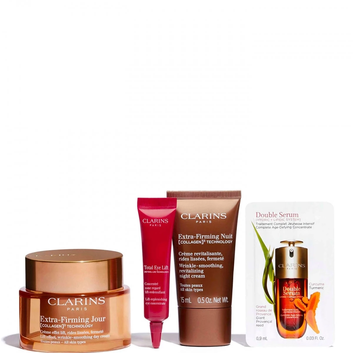 Ce coffret expert est idéal pour les femmes qui veulent une peau d'apparence plus jeune, plus lisse, raffermie, comme liftée : appliquez chaque jour la crème Extra-Firming Jour, rechargeable, dont la nouvelle technologie [COLLAGEN]3 TECHNOLOGY (polypeptide de collagène + extrait de pacanier + extrait de mitracarpus ) pour aider à améliorer la fermeté de la peau.