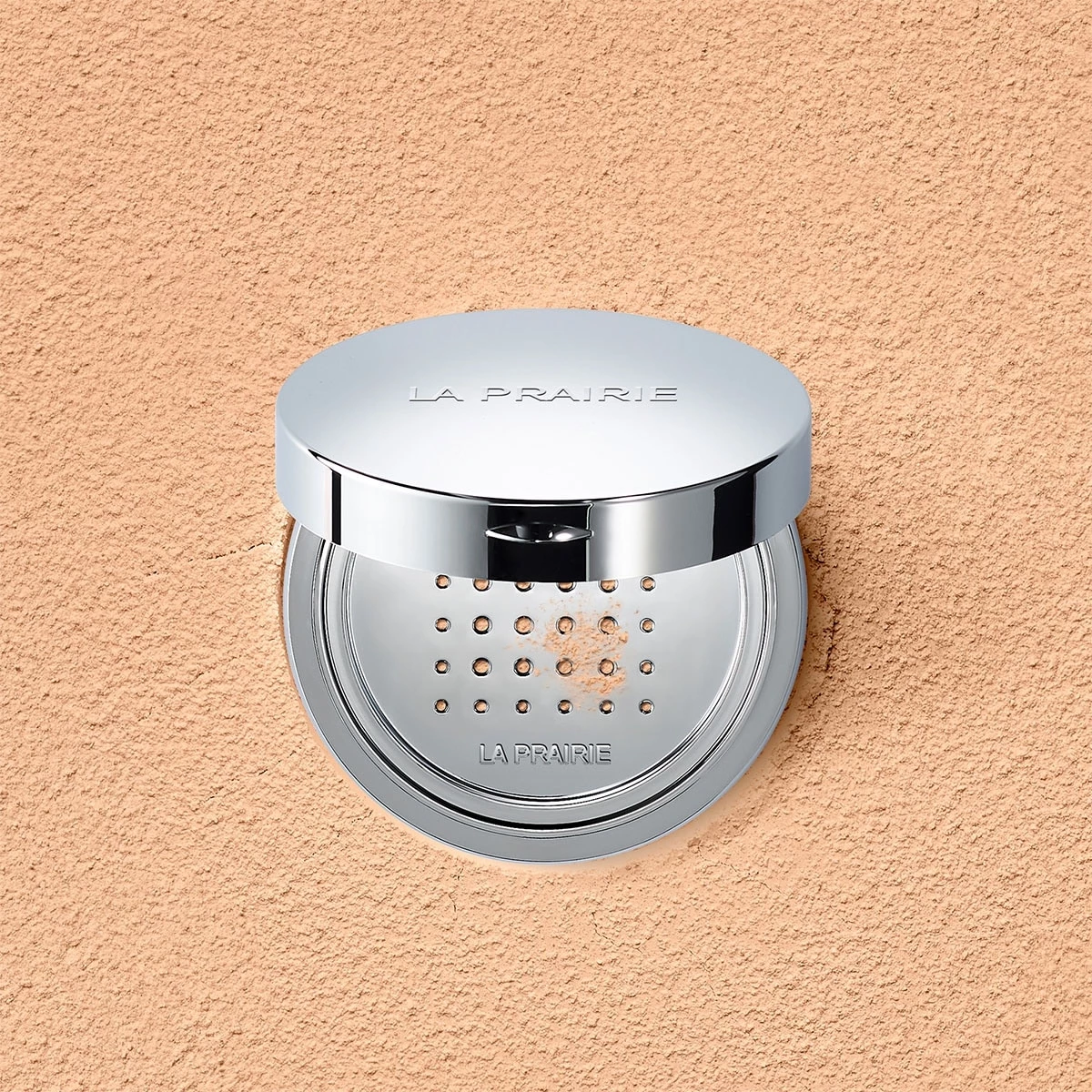 - Réouvrez le boîtier, puis appliquez la poudre à l’aide de la houppette par pressions circulaires ou avec le pinceau poudre libre La Prairie par balayage pour un rendu parfait.